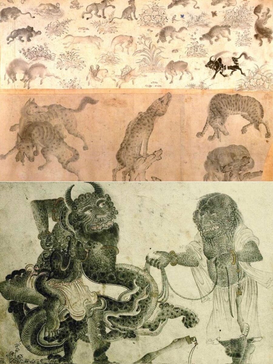 イランの伝統的な絵画は、サファヴィー朝(1501〜1736年)やカジャール朝(1789〜1925年)の時代に繁栄し、アジ・ダハーカやアンラ・マンユ、ダエーワらの悪魔の図像はこの時代の細密画に頻繁に登場します。