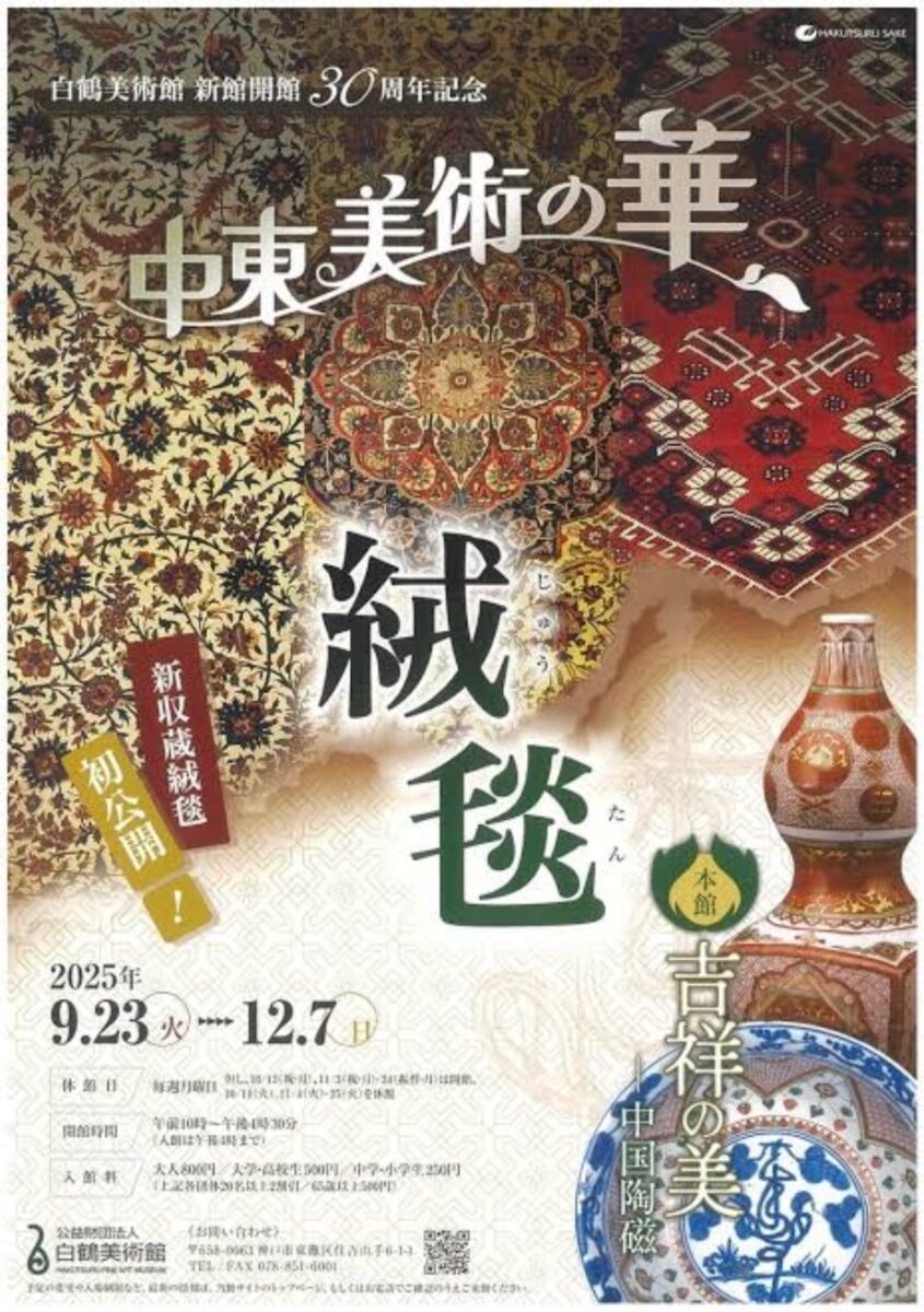 白鶴美術館は春と秋だけの開館で、今秋は新館開館30周年の特別企画として「中東美術の華・絨毯」が開催されています。