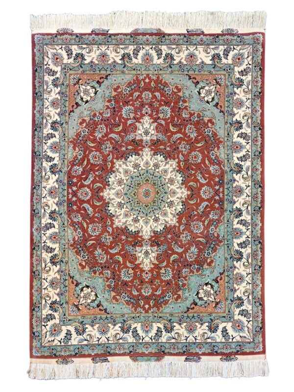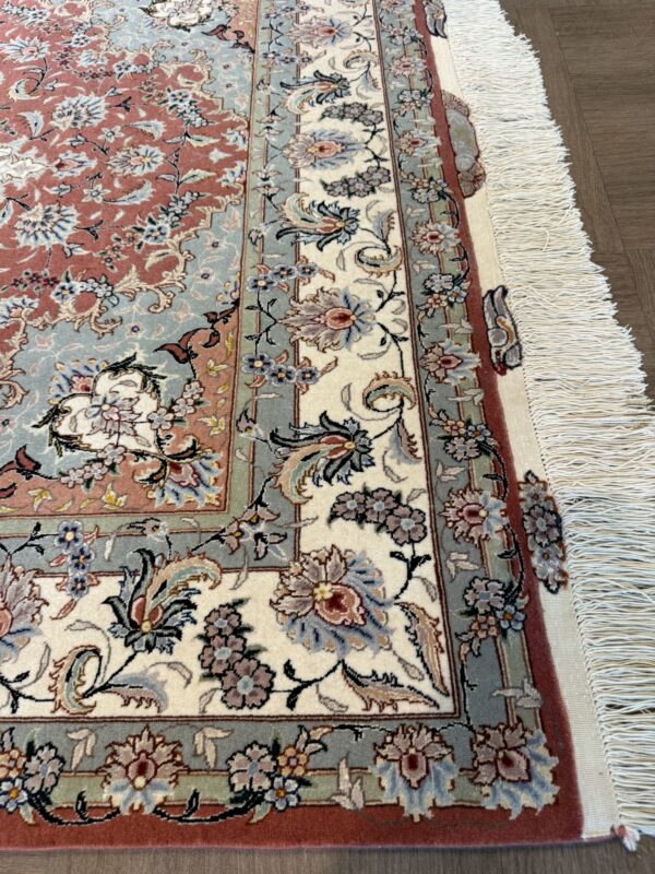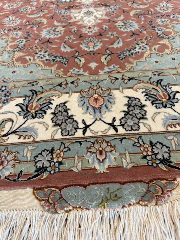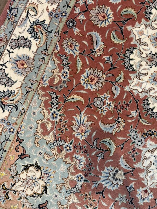 タブリーズ絨毯のノット数は「ラジ」という単位で表されますが、これは6.65センチ中のノット列を表したもので、最高級品では90ラジ(169万ノット)以上を数えるものもあります。
