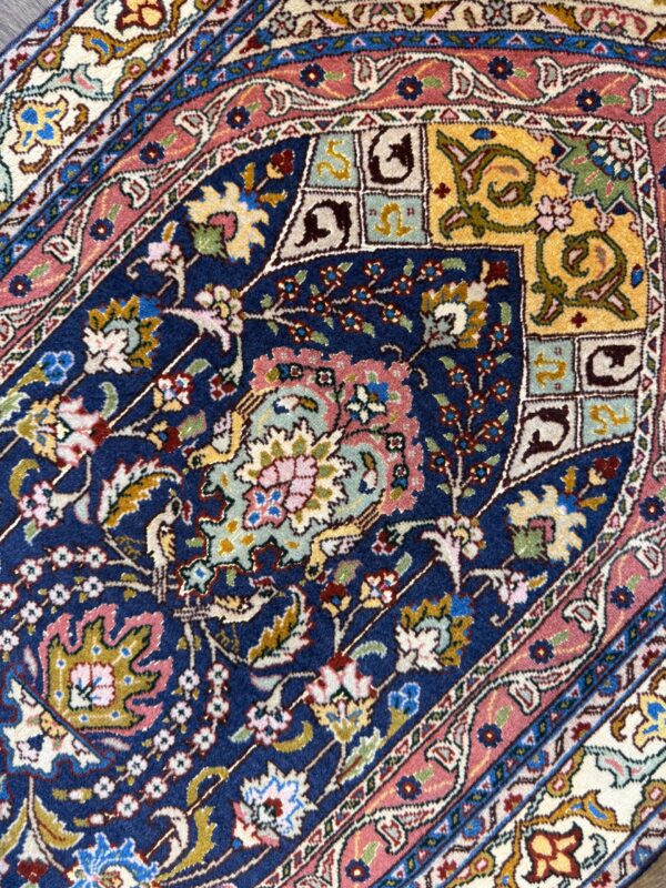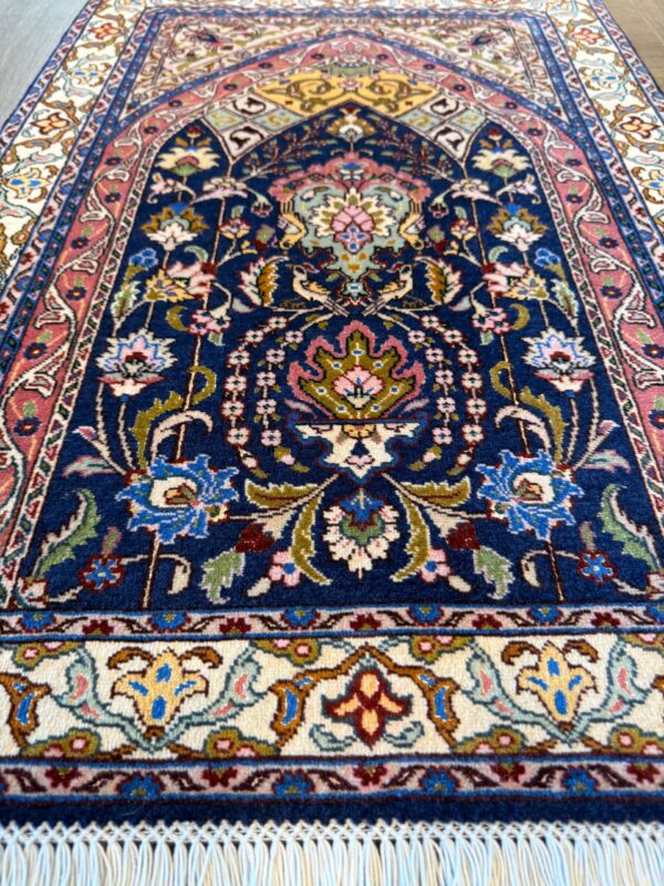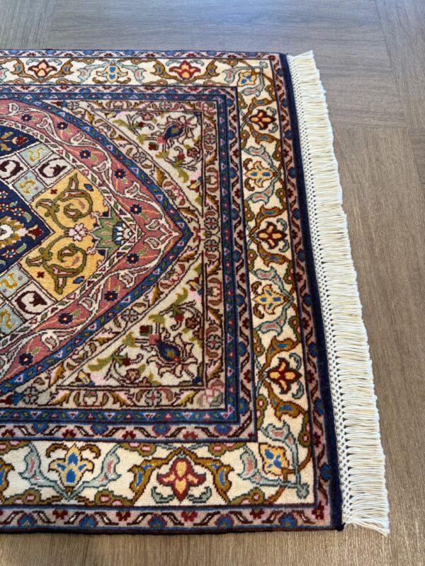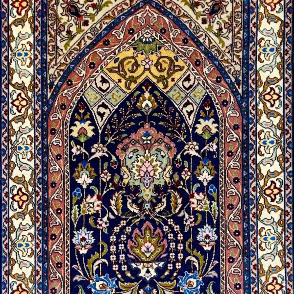 タブリーズ絨毯のノット数は「ラジ」という単位で表されますが、これは6.65センチ中のノット列を表したもので、最高級品では90ラジ(169万ノット)以上を数えるものもあります。