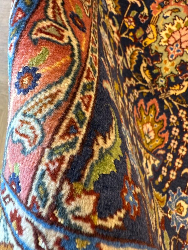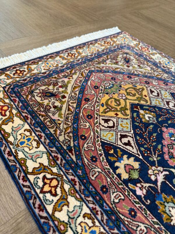 多様なデザインで知られるタブリーズ絨毯ですが、ヨーロッパ調の優雅なゴル・ファランギ・パターンから、コーカサス調の荘厳なジオメトリック・パターンまで、そのパターンは実に多岐にわたります。