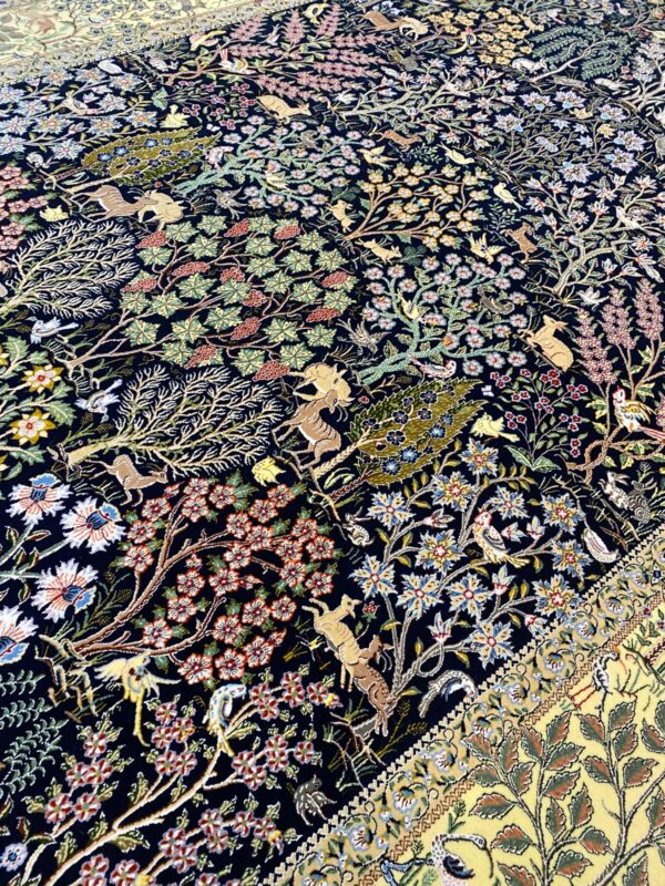 絨毯製作が始まったのは1920年代に入ってからと比較的新しい産地ですが、西方140キロにあるイスファハンの絨毯職人の指導のもとアバヤ織で培った技術力を生かして、短期間のうちに大きな成長を遂げます。