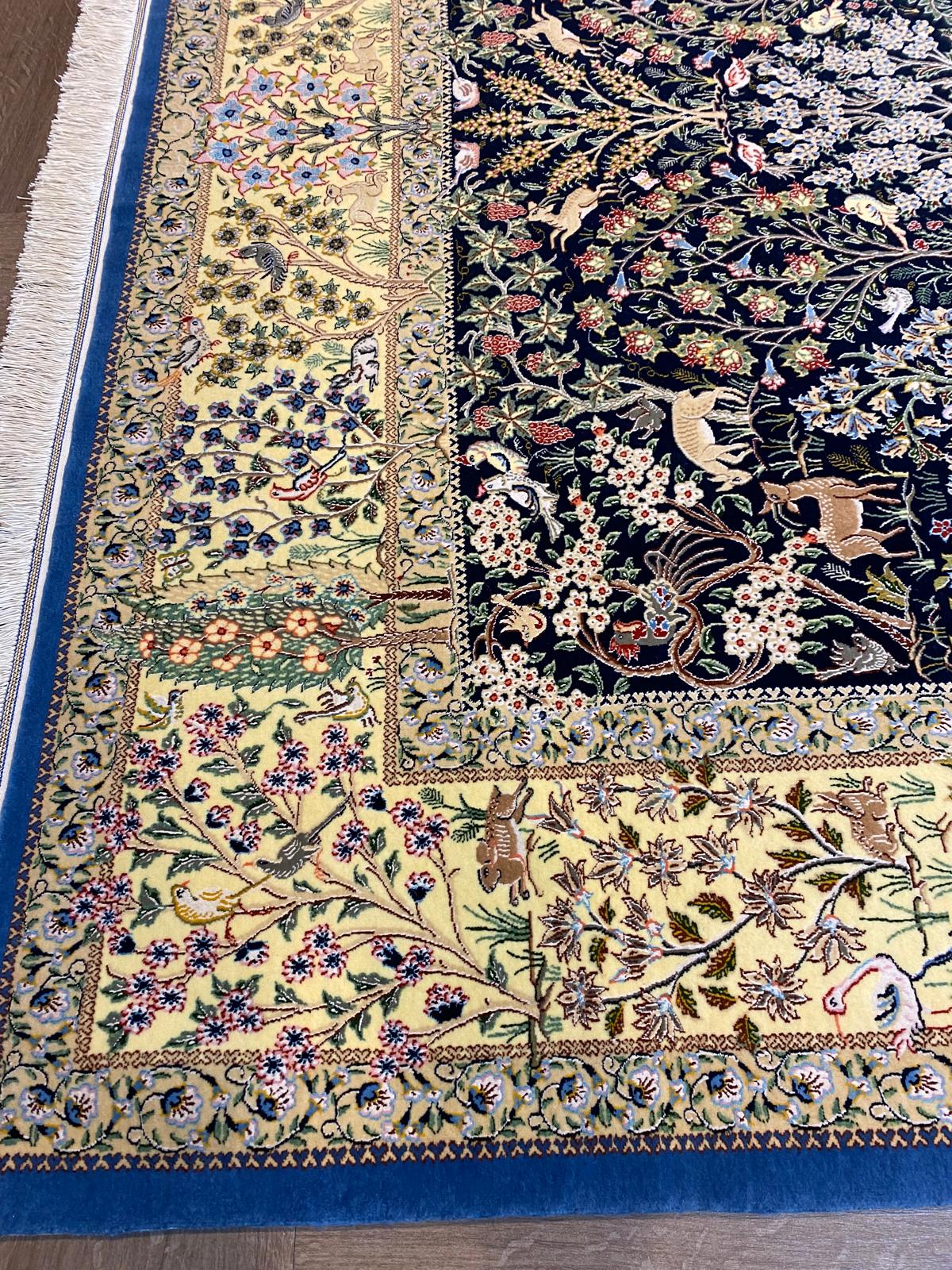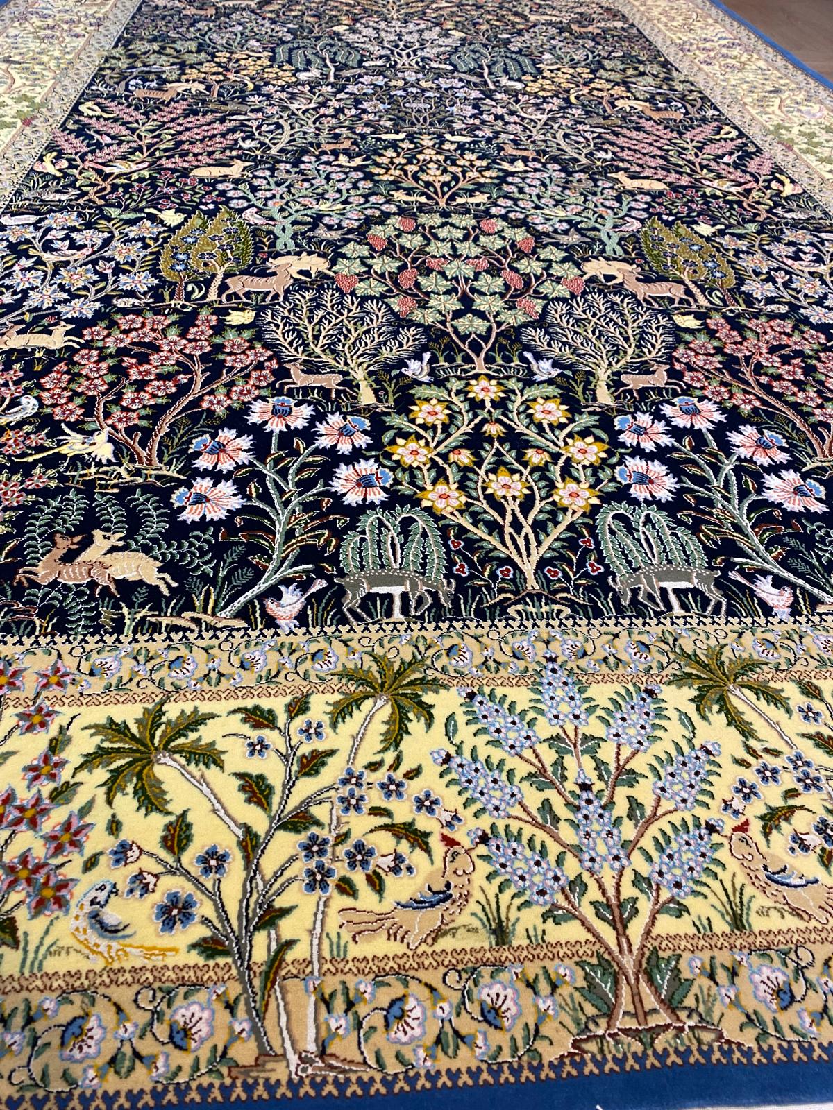 絨毯製作が始まったのは1920年代に入ってからと比較的新しい産地ですが、西方140キロにあるイスファハンの絨毯職人の指導のもとアバヤ織で培った技術力を生かして、短期間のうちに大きな成長を遂げます。