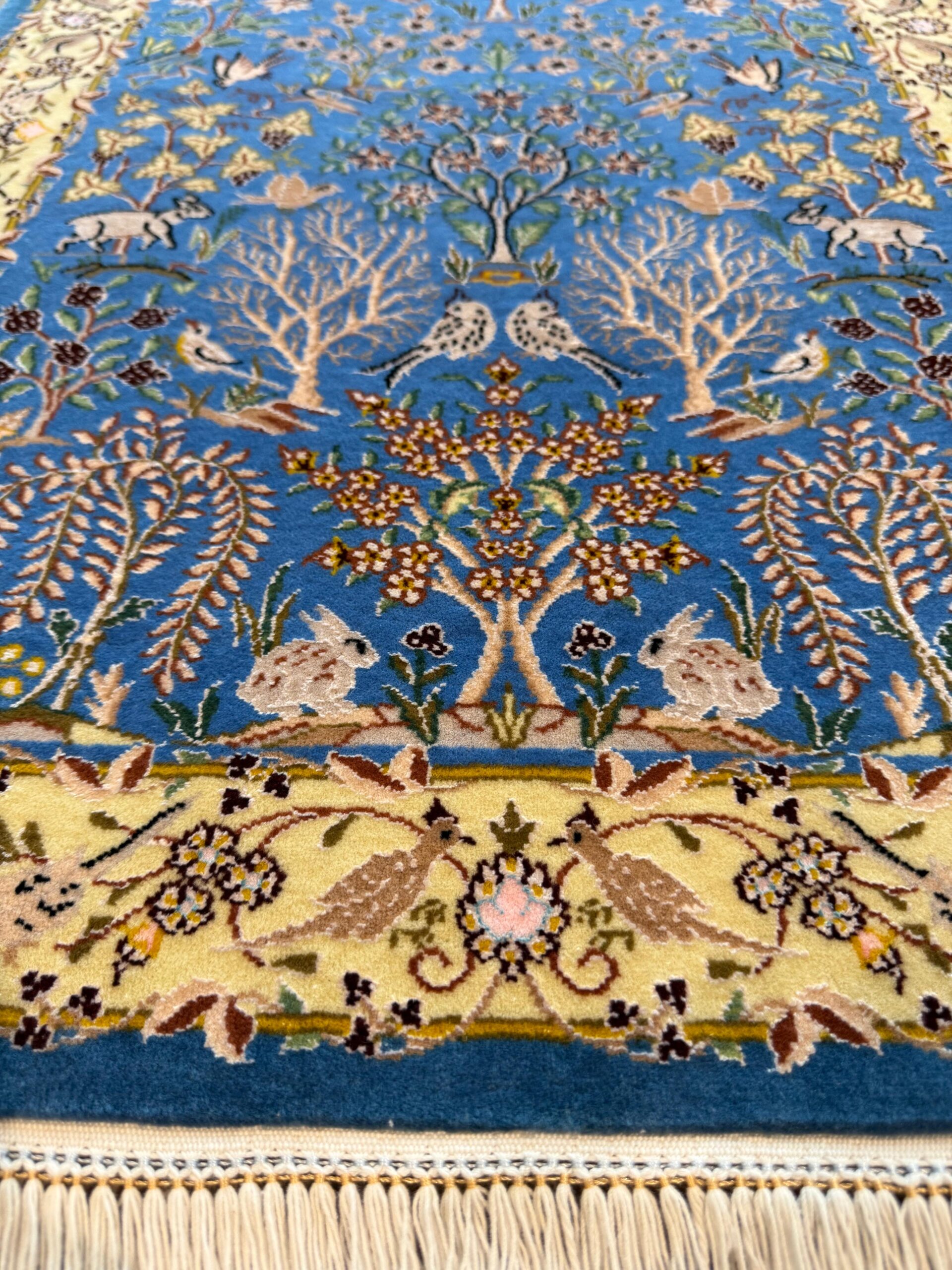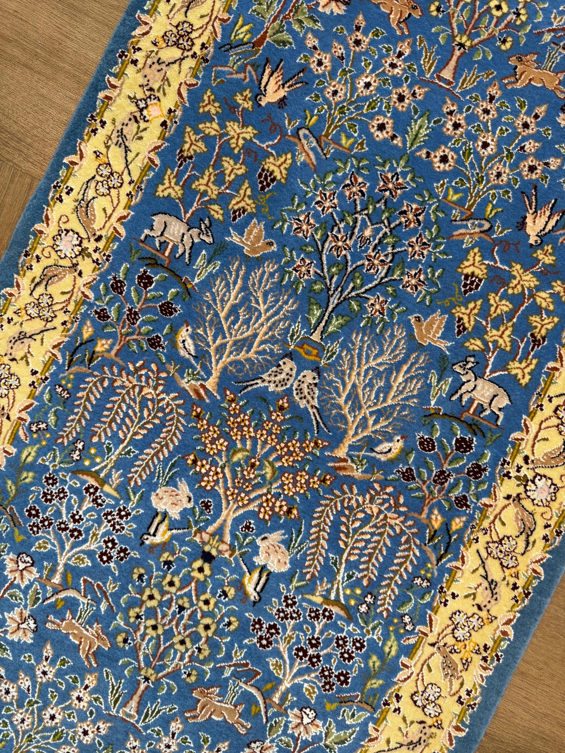 絨毯製作が始まったのは1920年代に入ってからと比較的新しい産地ですが、西方140キロにあるイスファハンの絨毯職人の指導のもとアバヤ織で培った技術力を生かして、短期間のうちに大きな成長を遂げます。