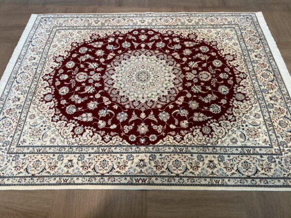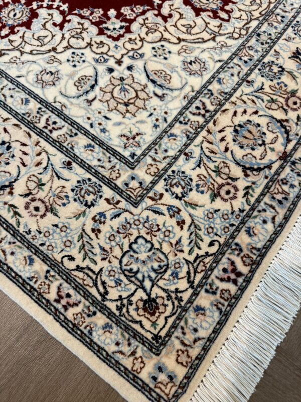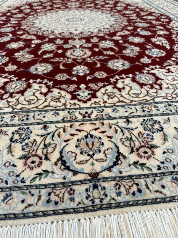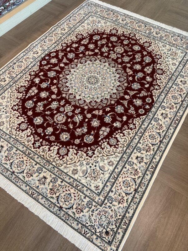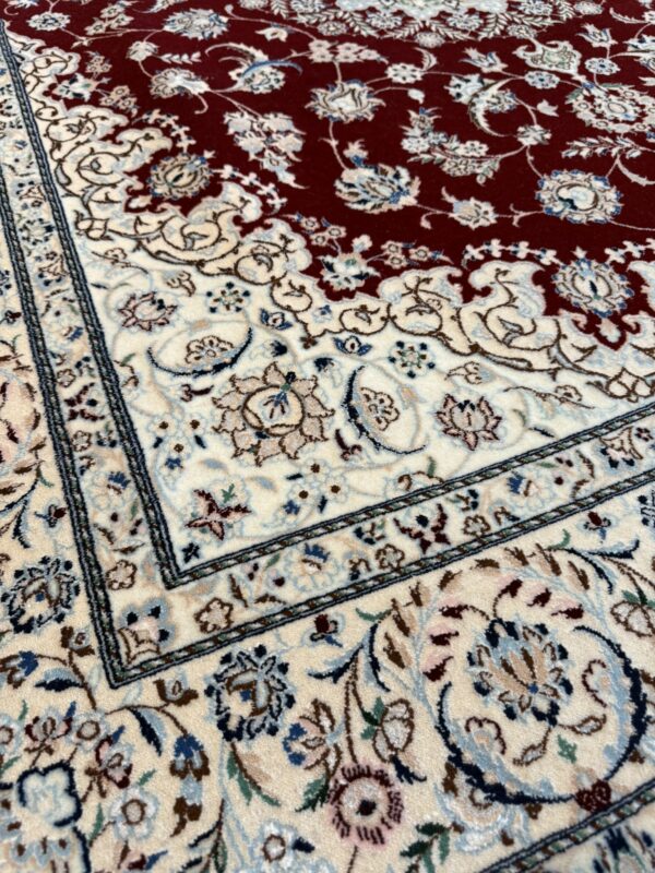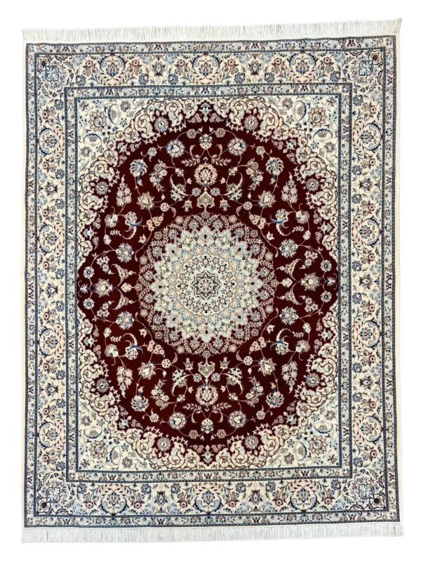 初期のナイン絨毯はイスファハン絨毯によく似た赤色や紺色を多用したものでしたが、1950年代にファットラー・ハビビアン・ナイニが製作したクリーム色や象牙色を基調にした作品がロンドンで好評を博したことにより、以後ナインではこれに倣った絨毯が製作されるようにになりました。