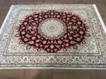 この「世界で一番明るい絨毯」はイスファハン絨毯同様に、複雑なメダリオンを繊細なイスリム文様が取り囲むデザインが一般的ですが、ドーム文様やタイル文様なども多く製作されており、こうした幾何学的な文様はその色調と相まってモダンな印象を与えます。