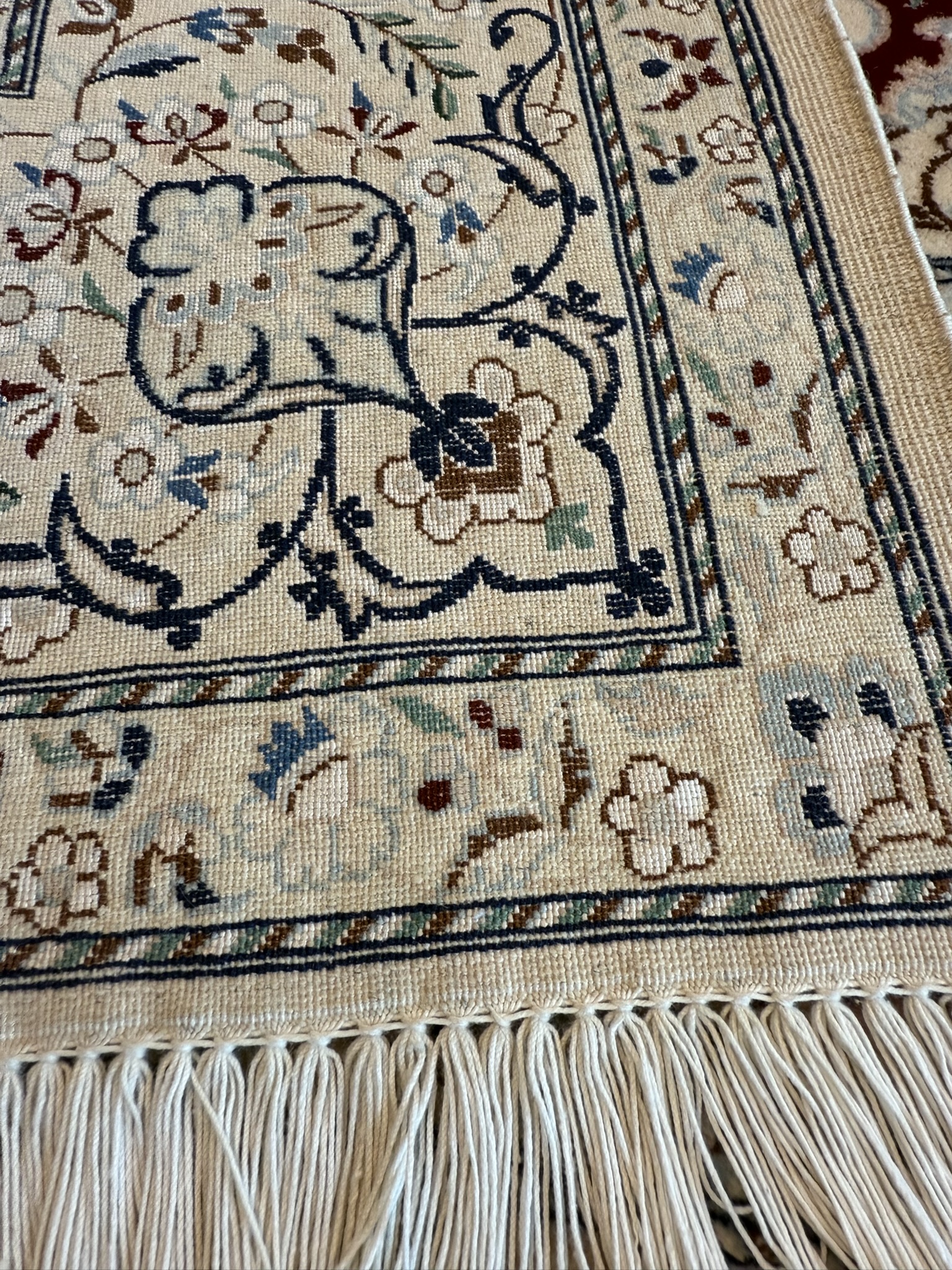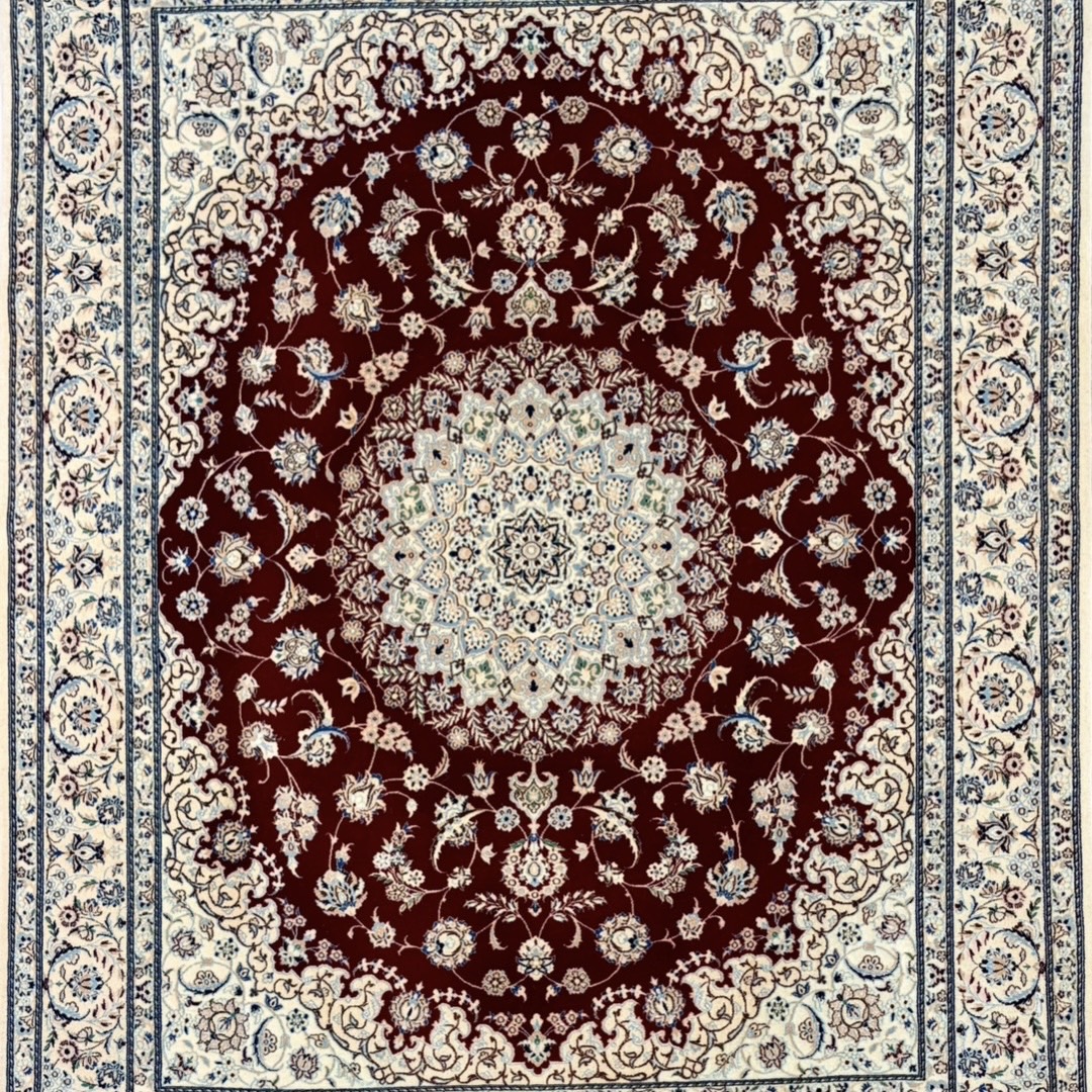 初期のナイン絨毯はイスファハン絨毯によく似た赤色や紺色を多用したものでしたが、1950年代にファットラー・ハビビアン・ナイニが製作したクリーム色や象牙色を基調にした作品がロンドンで好評を博したことにより、以後ナインではこれに倣った絨毯が製作されるようにになりました。