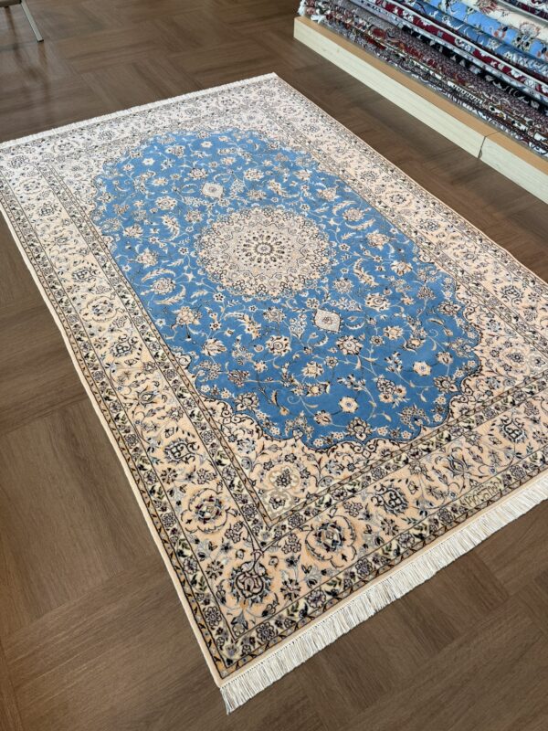 初期のナイン絨毯はイスファハン絨毯によく似た赤色や紺色を多用したものでしたが、1950年代にファットラー・ハビビアン・ナイニが製作したクリーム色や象牙色を基調にした作品がロンドンで好評を博したことにより、以後ナインではこれに倣った絨毯が製作されるようにになりました。