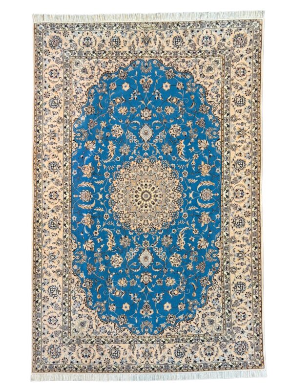 初期のナイン絨毯はイスファハン絨毯によく似た赤色や紺色を多用したものでしたが、1950年代にファットラー・ハビビアン・ナイニが製作したクリーム色や象牙色を基調にした作品がロンドンで好評を博したことにより、以後ナインではこれに倣った絨毯が製作されるようにになりました。