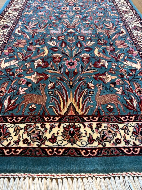 デザインは自然をテーマにした幾何学文様が主流で、その個性はペルシャ絨毯の中でも特に際立っていると言えるでしょう。