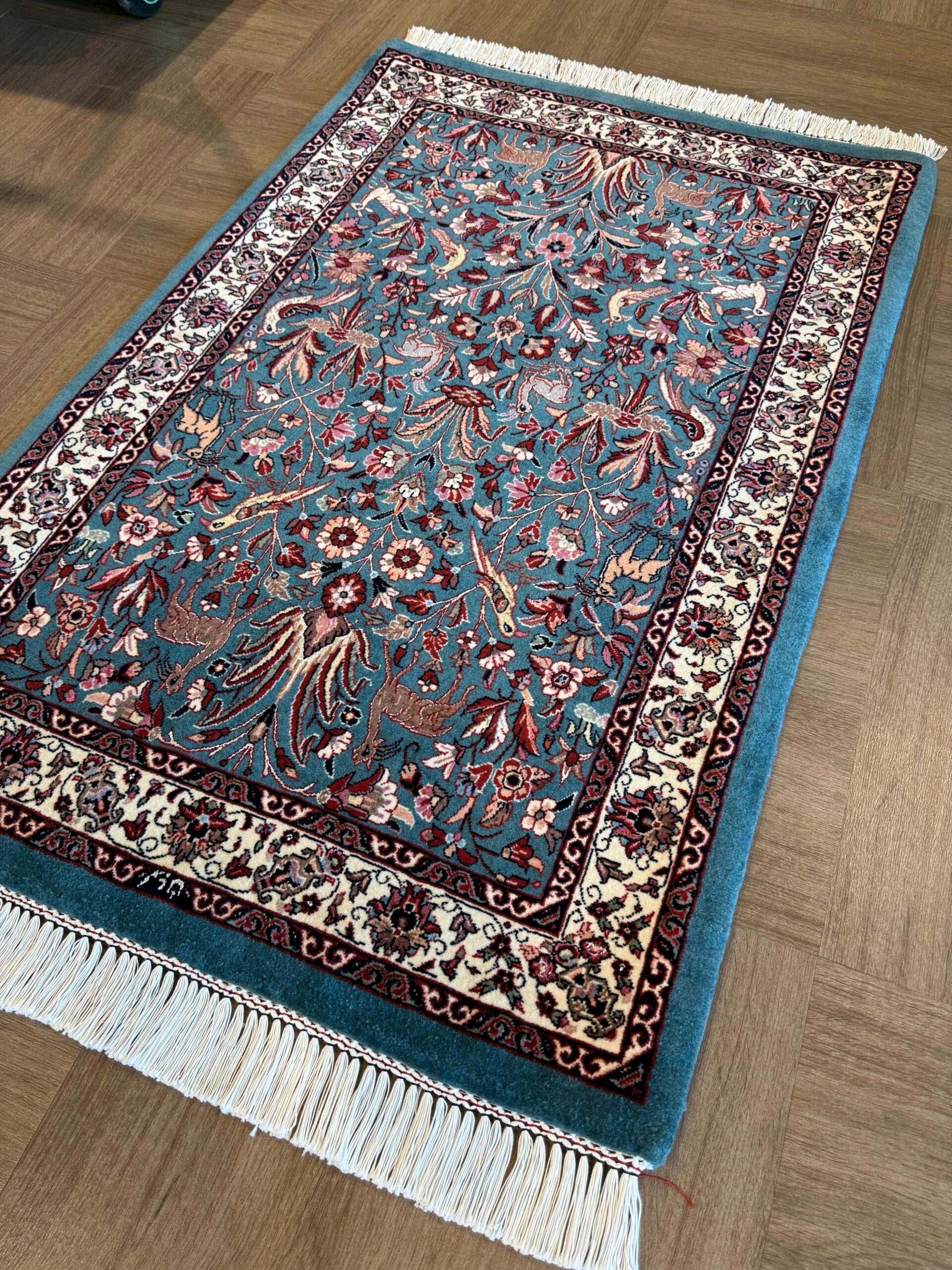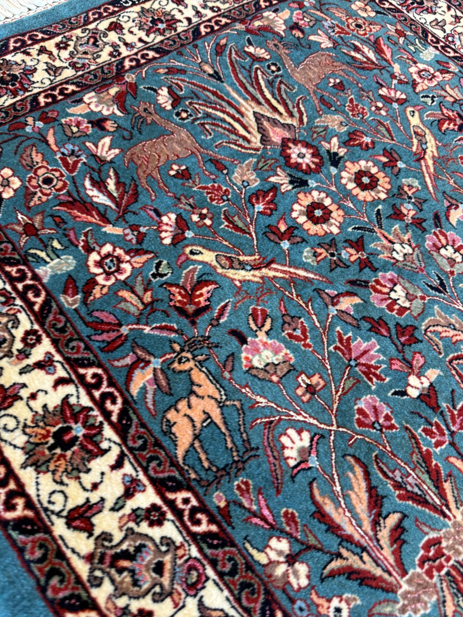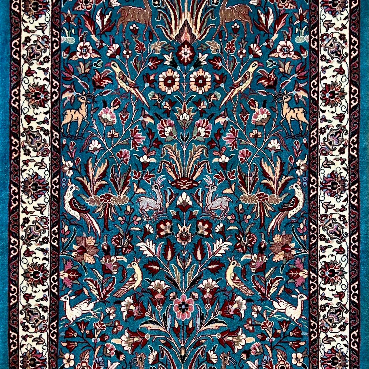 デザインは自然をテーマにした幾何学文様が主流で、その個性はペルシャ絨毯の中でも特に際立っていると言えるでしょう。