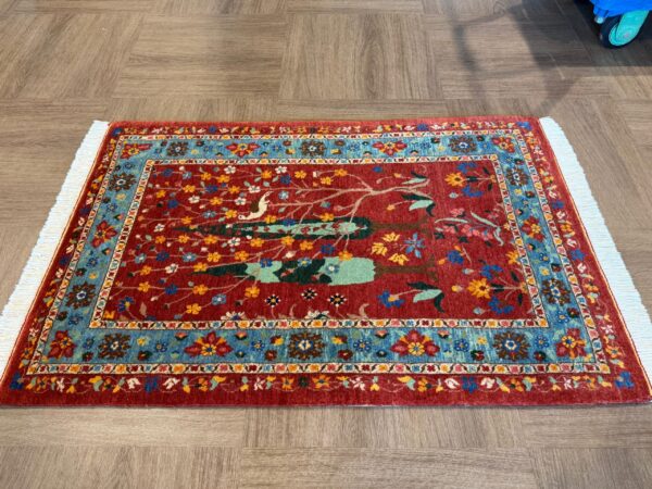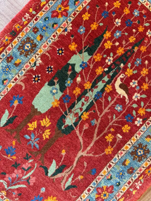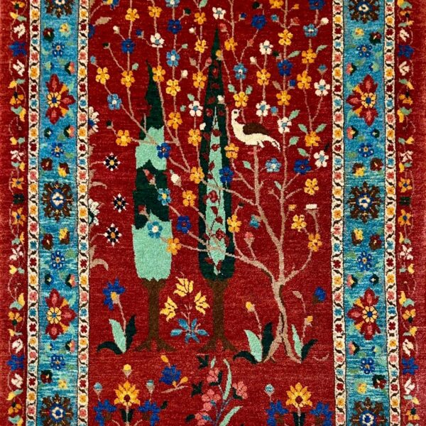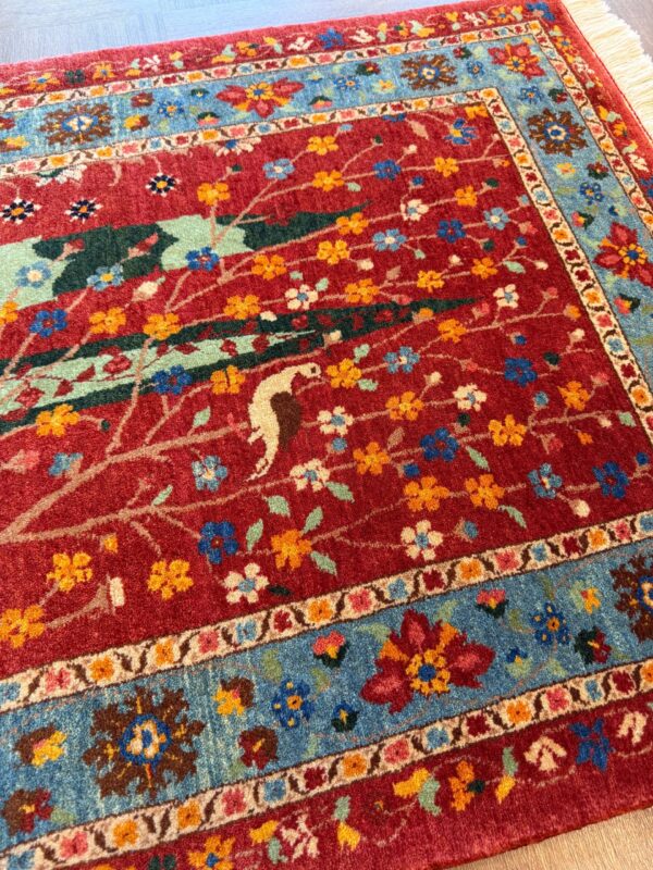 ■楽園の風景を細密画風に織り出した、新しいスタイルのベラミン絨毯です。