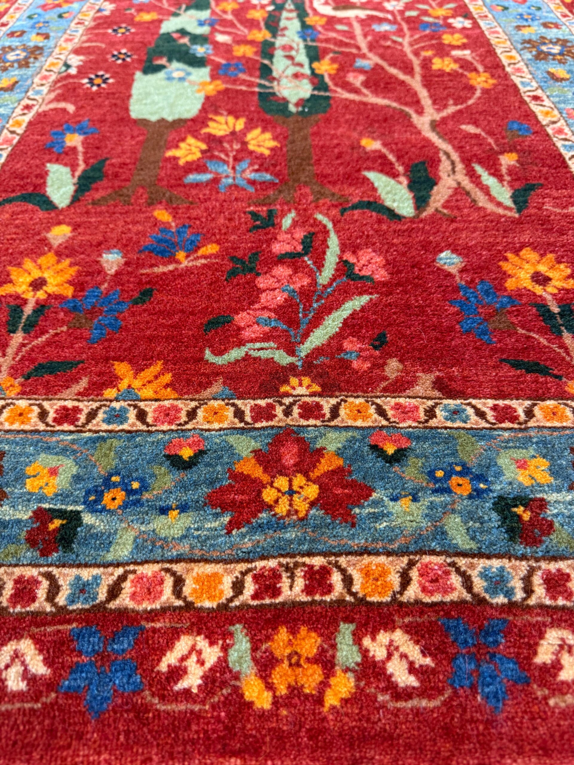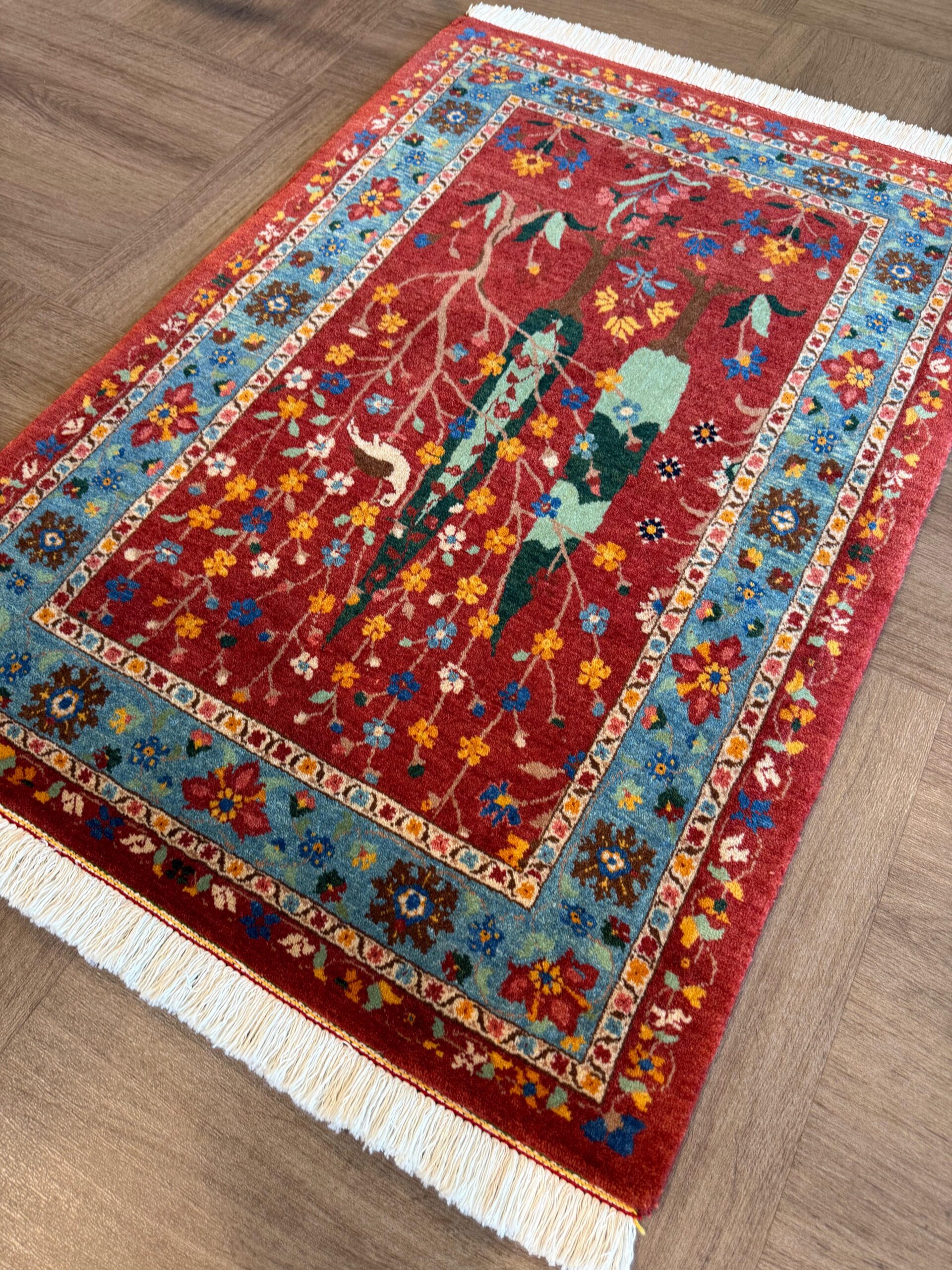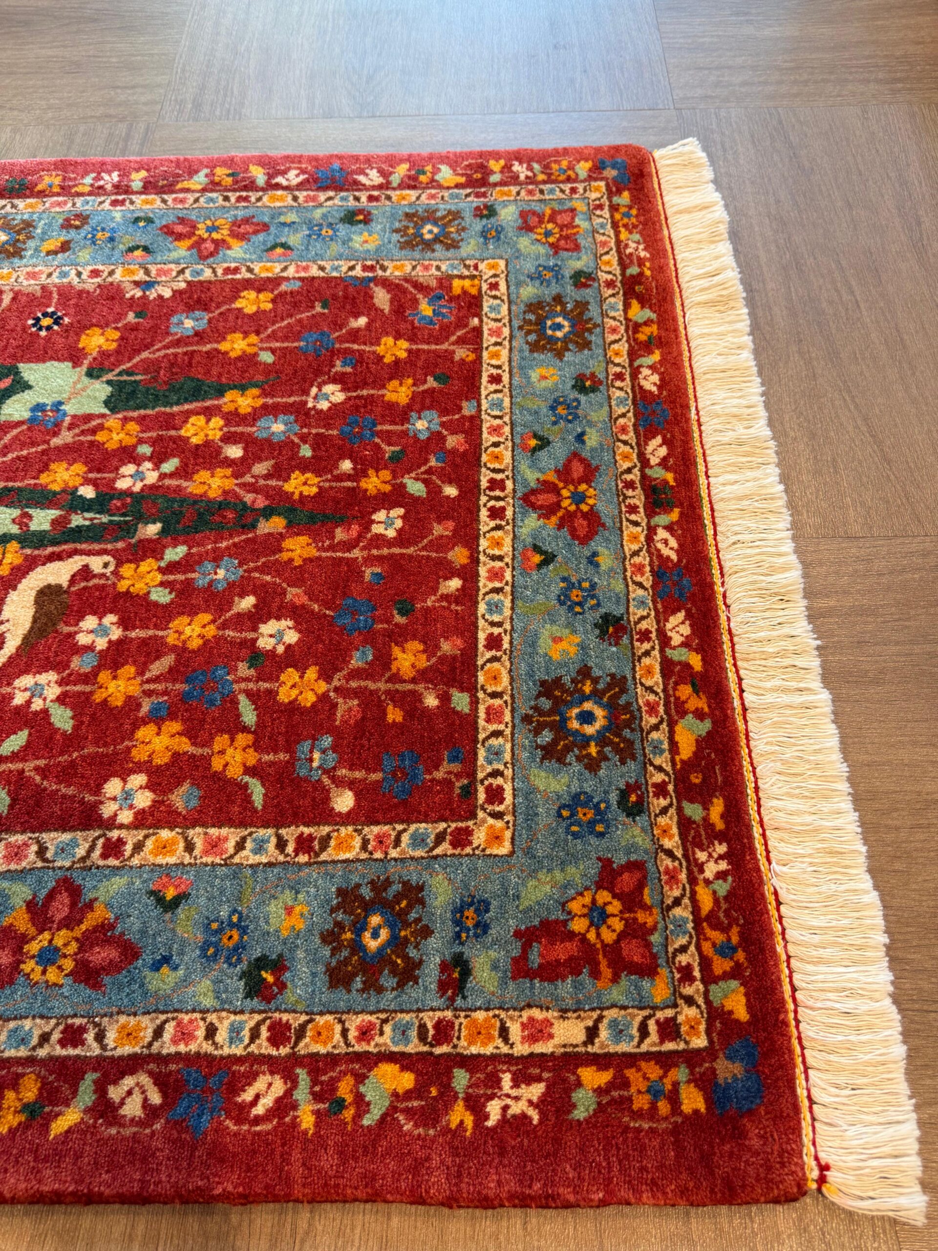 ■楽園の風景を細密画風に織り出した、新しいスタイルのベラミン絨毯です。