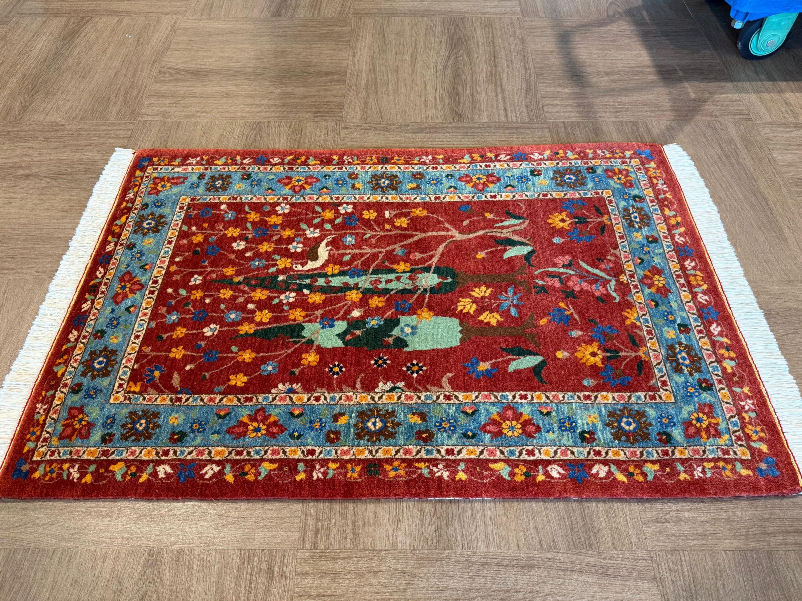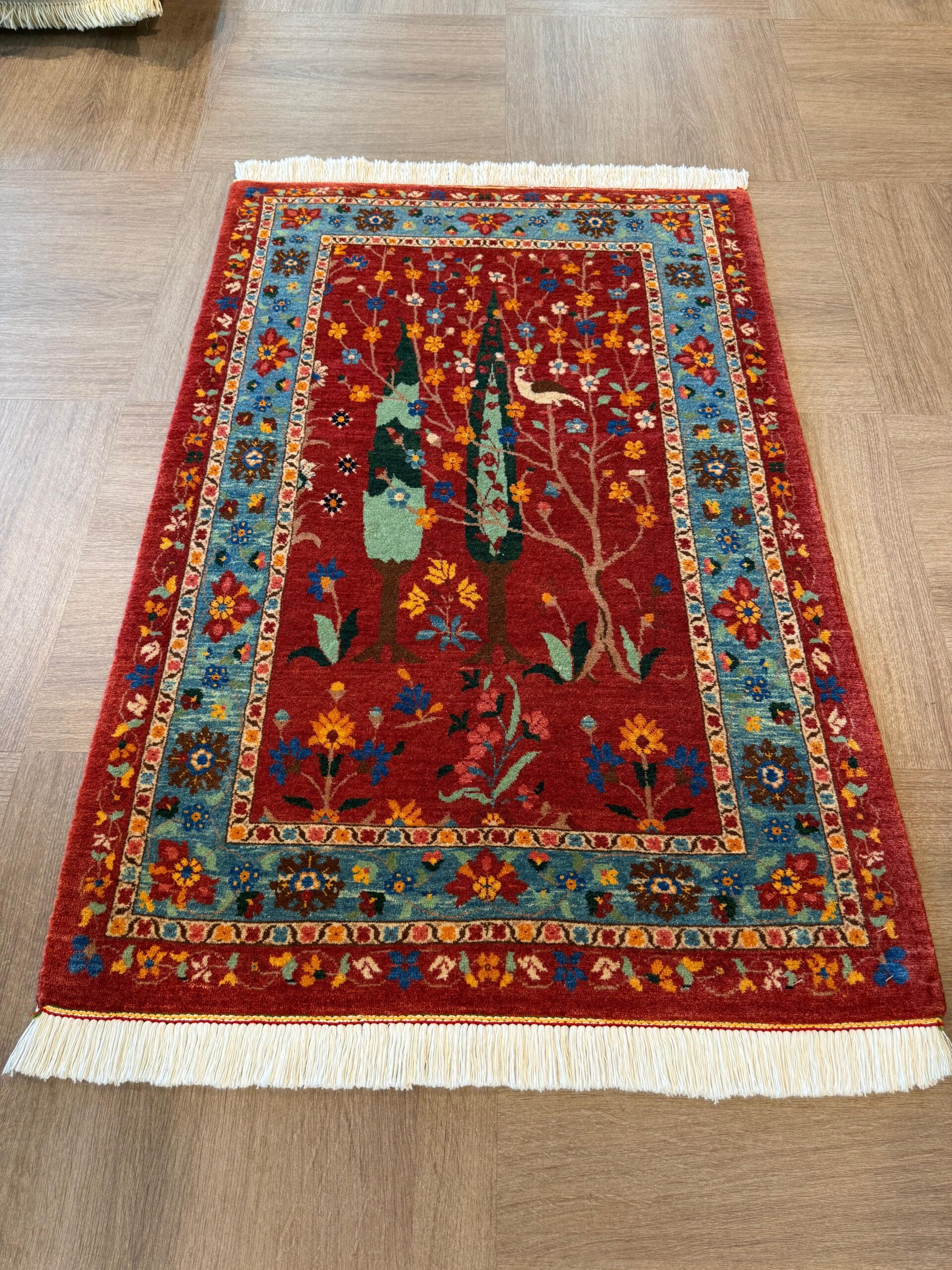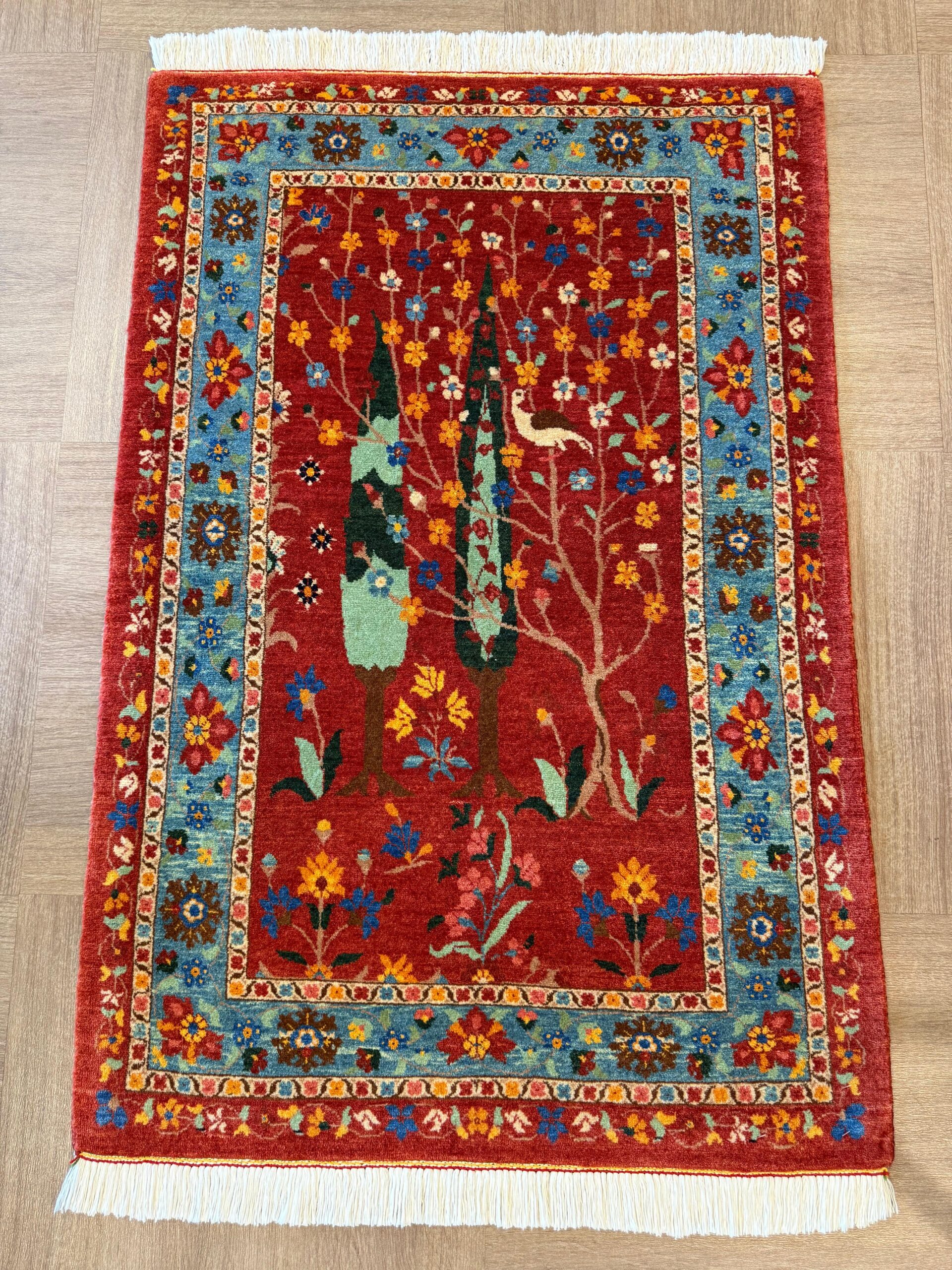 ■楽園の風景を細密画風に織り出した、新しいスタイルのベラミン絨毯です。