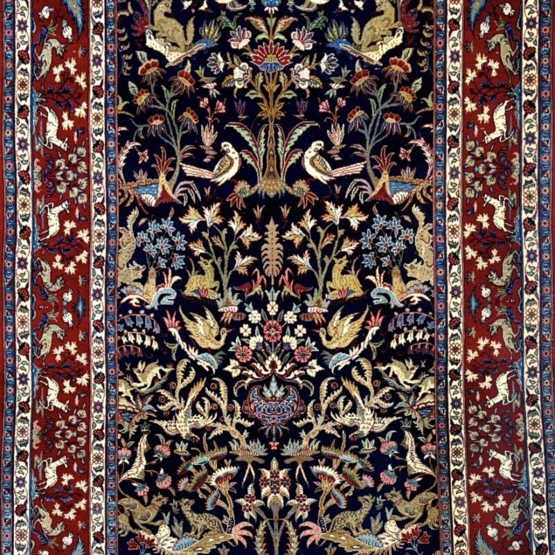 デザインはサファヴィー朝期の絨毯の影響を受けているものが多く見られますが、第二次世界大戦後、テヘラン絨毯の生産は中止されました。