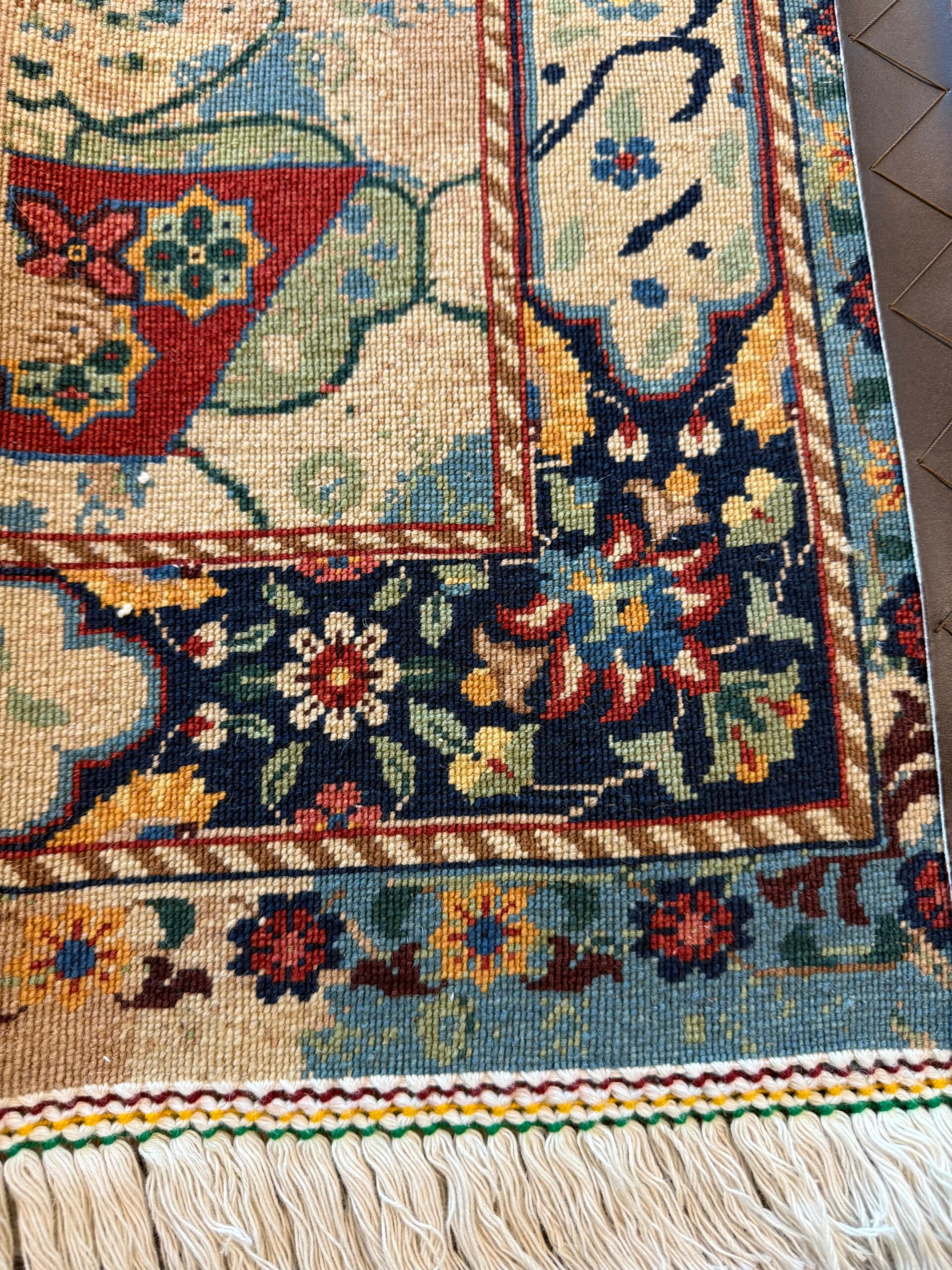 ロボット掃除機はフリンジを傷めてしまうため、使用を控えるかフリンジを絨毯の内側に織り込んでから起動させるようにしてください。