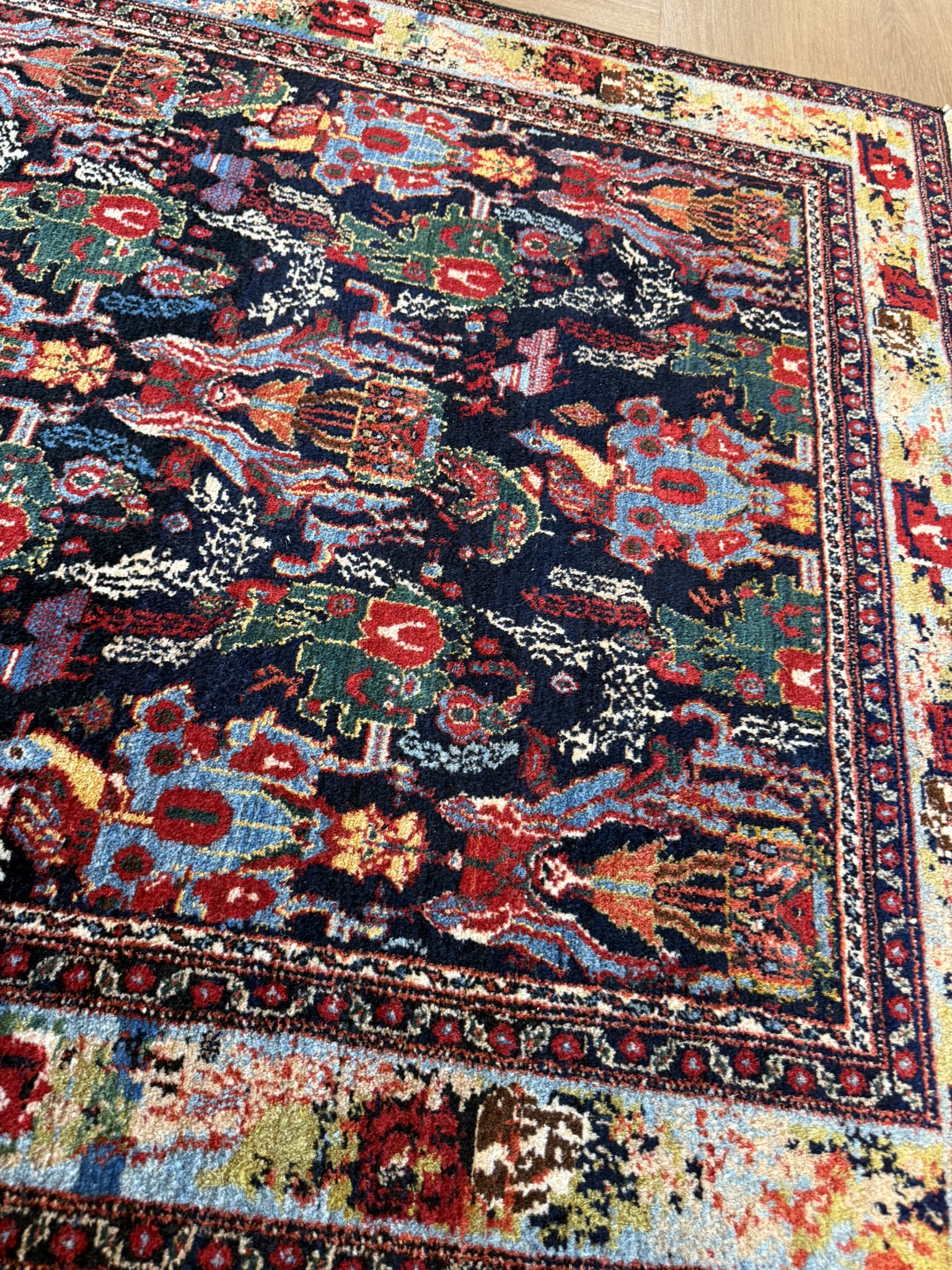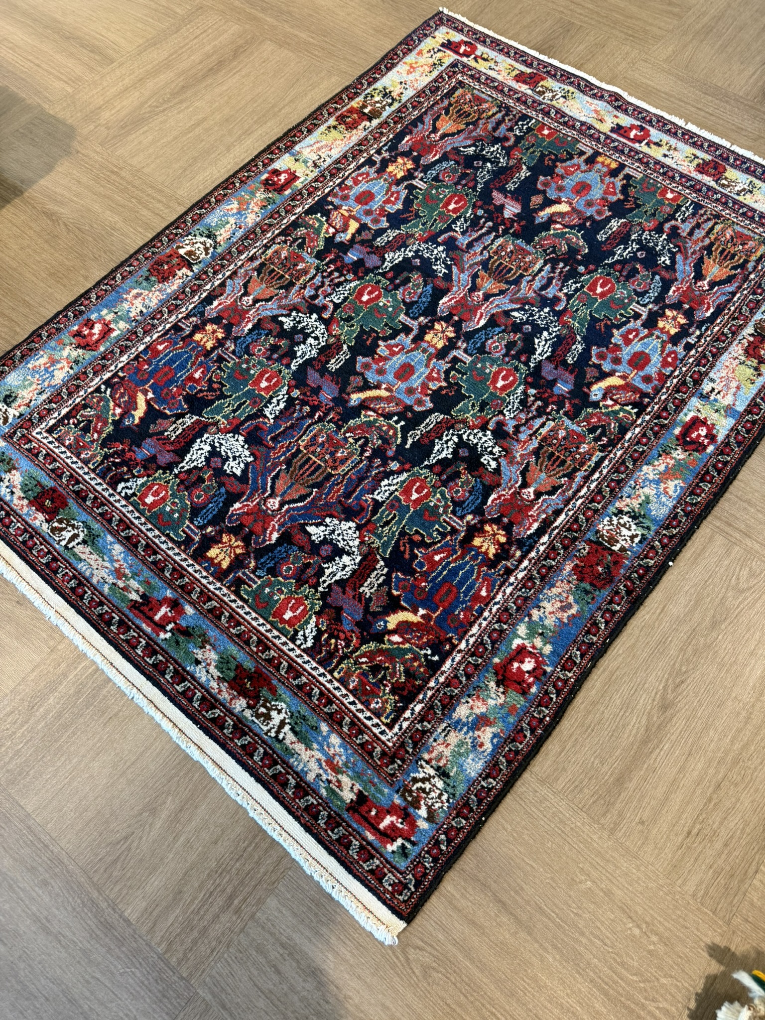 セネ絨毯はヘラティのほか、ゴル・ファランギやペイズリーなどのパターンが代表的ですが、近年、バリエーションは少なくなっています。