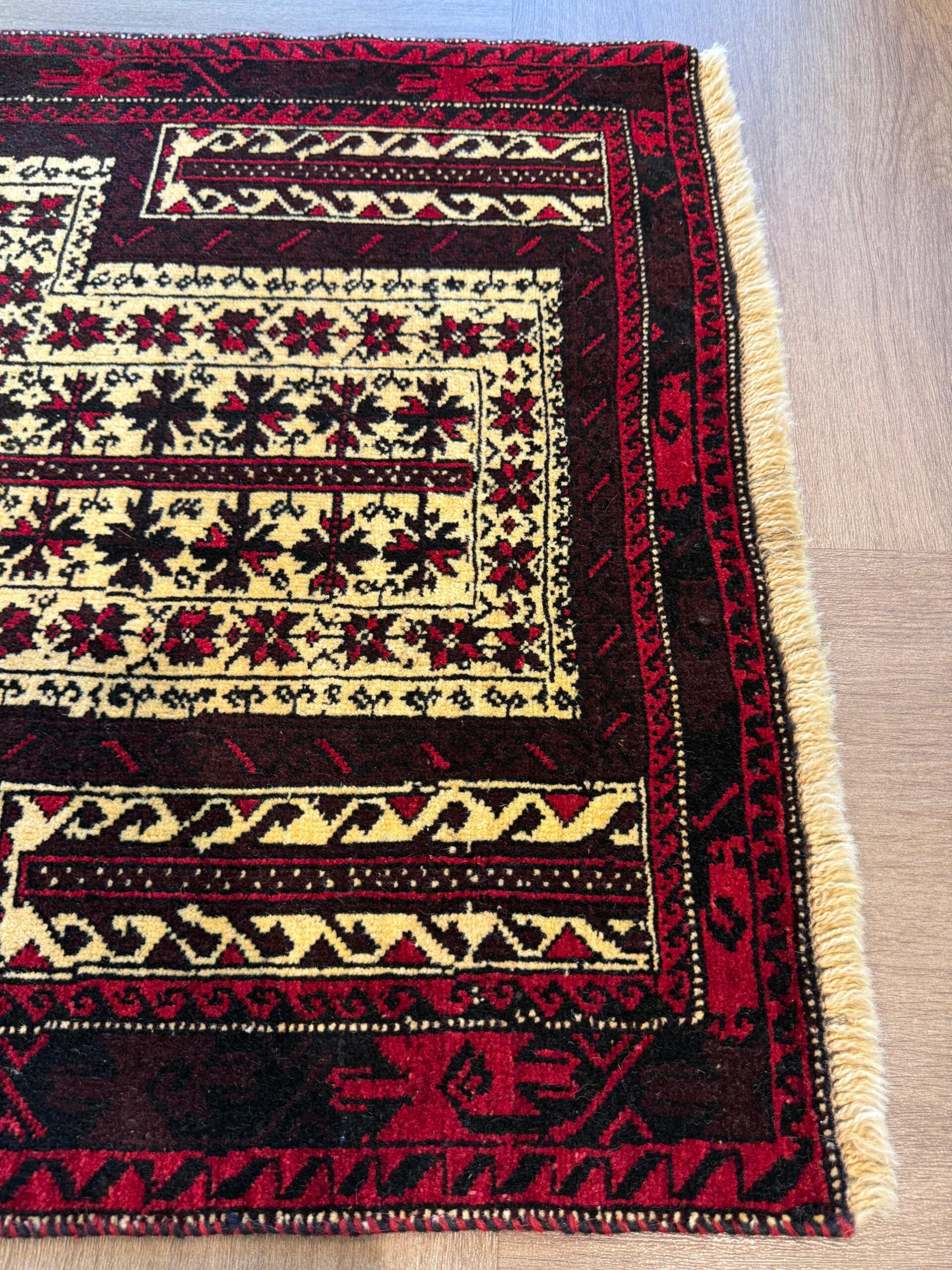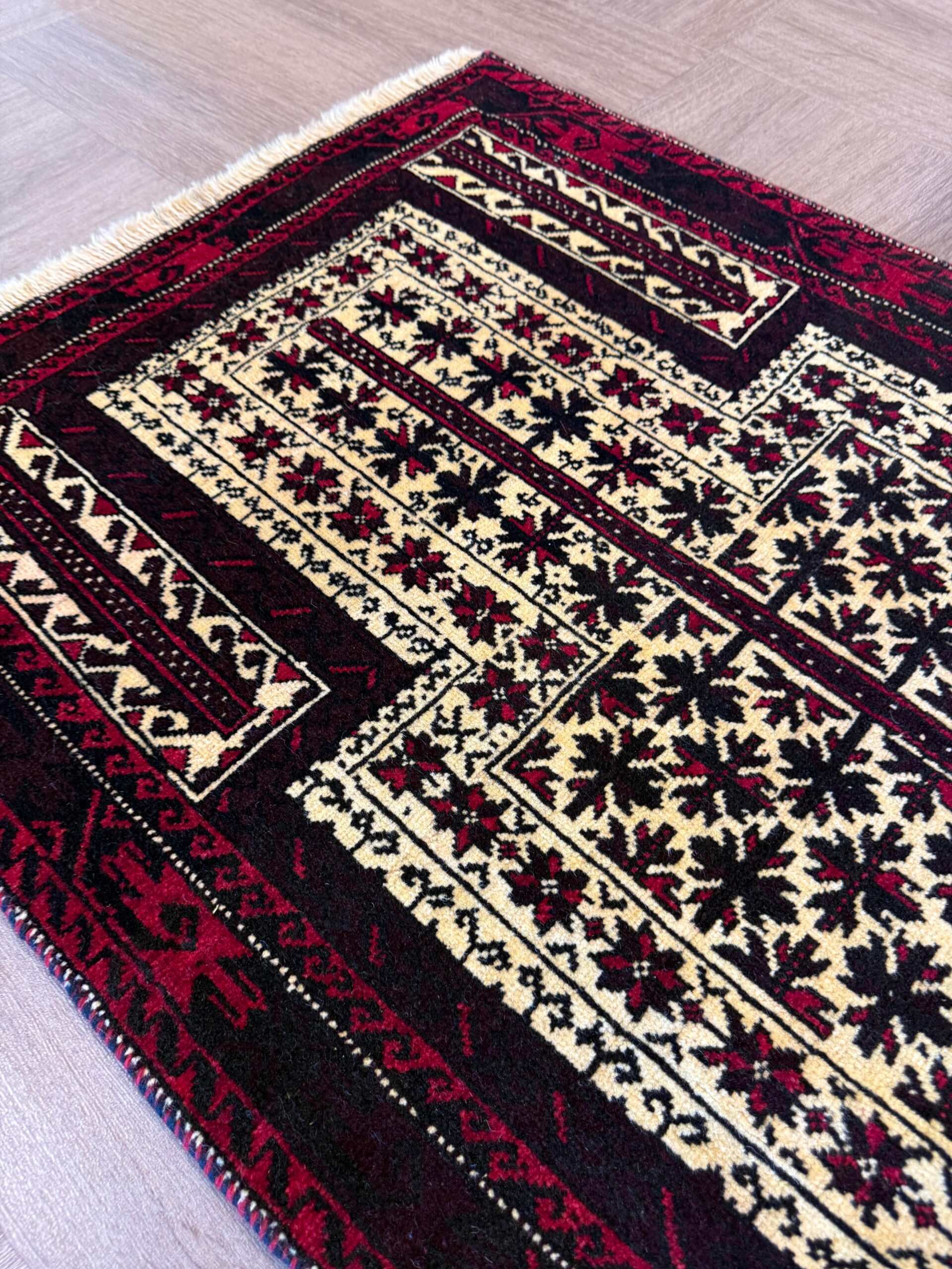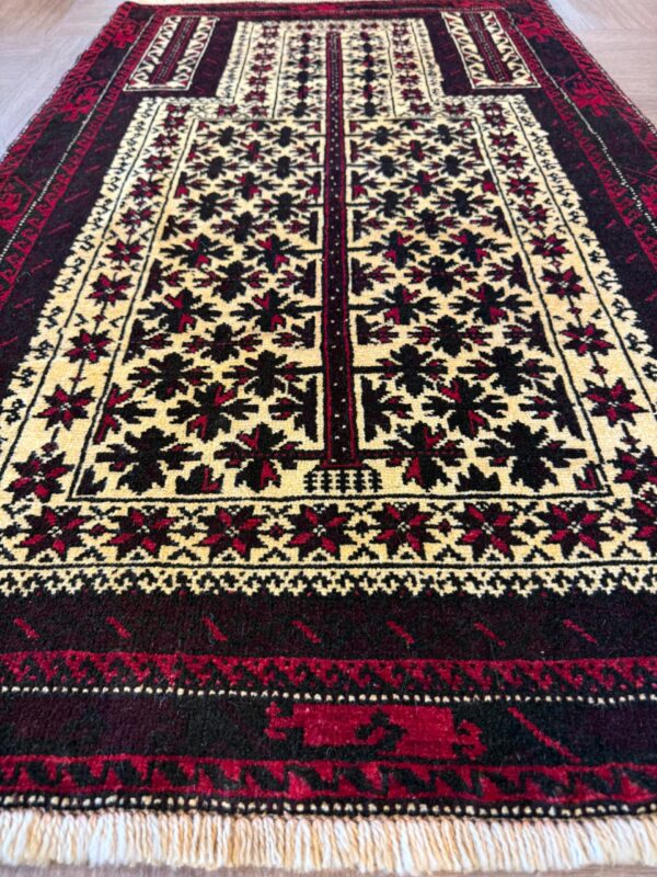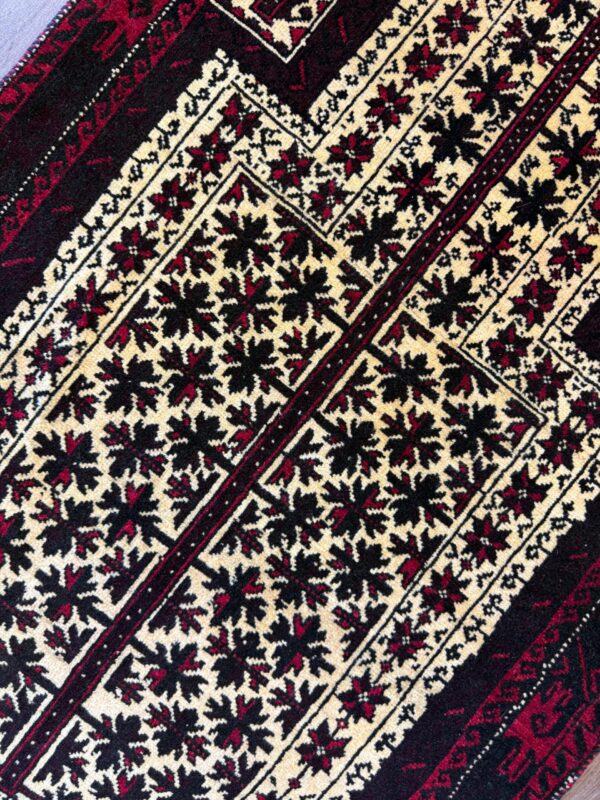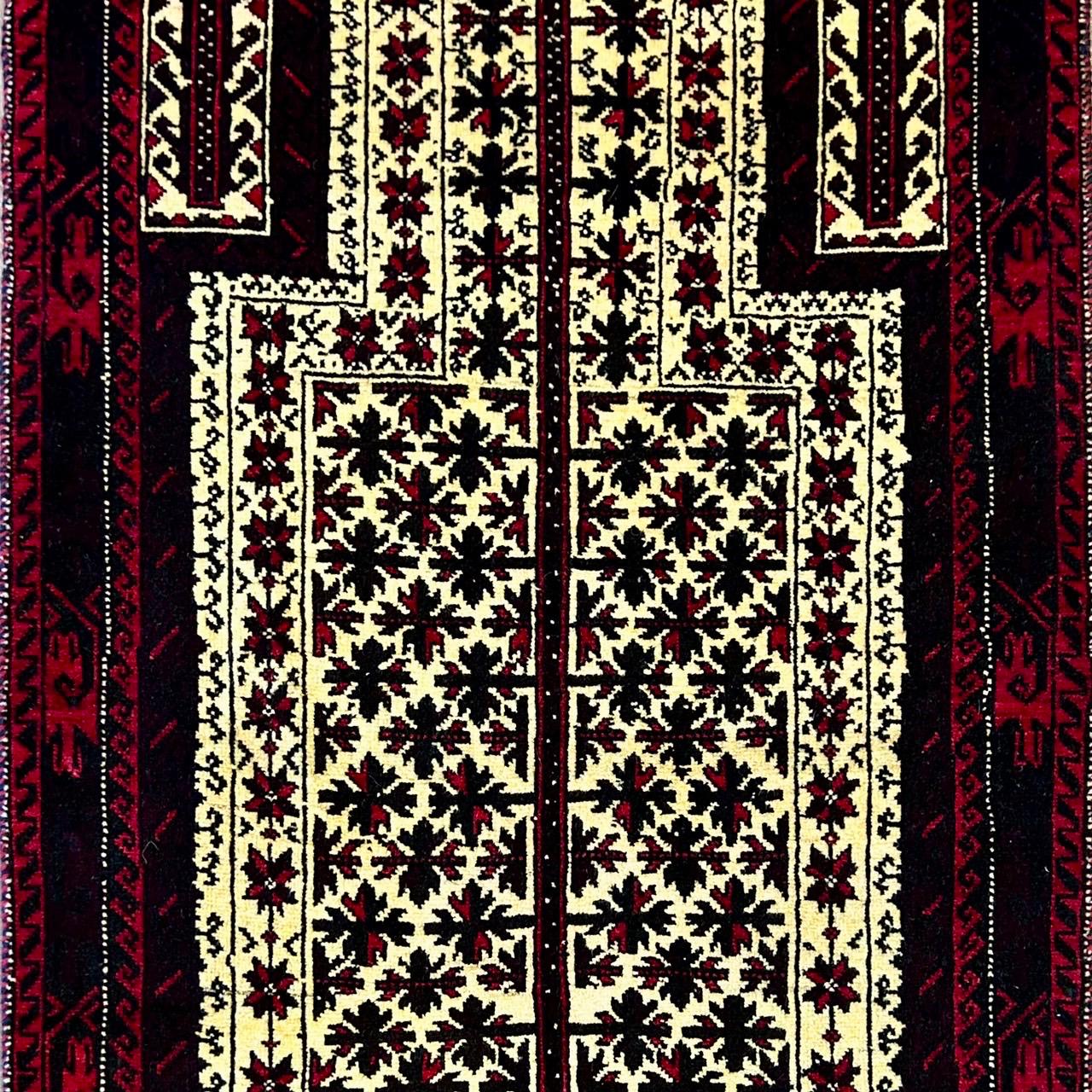 イランでは比較的小さなサイズが大半で、3平米以上のものはほとんど見かけませんが、アフガニスタンでは大きなサイズのバルーチ絨毯も製作されています。