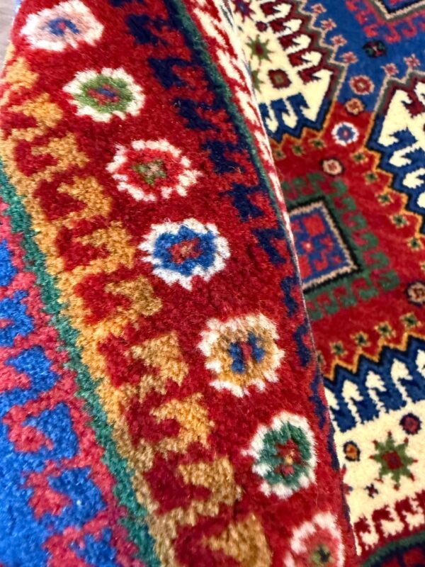高品質なウールを手紡ぎし天然染料で染めあげたヤラメ絨毯には、遊牧民の文化的価値観と日常生活を反映したシンボルやモチーフが織り込まれます。
