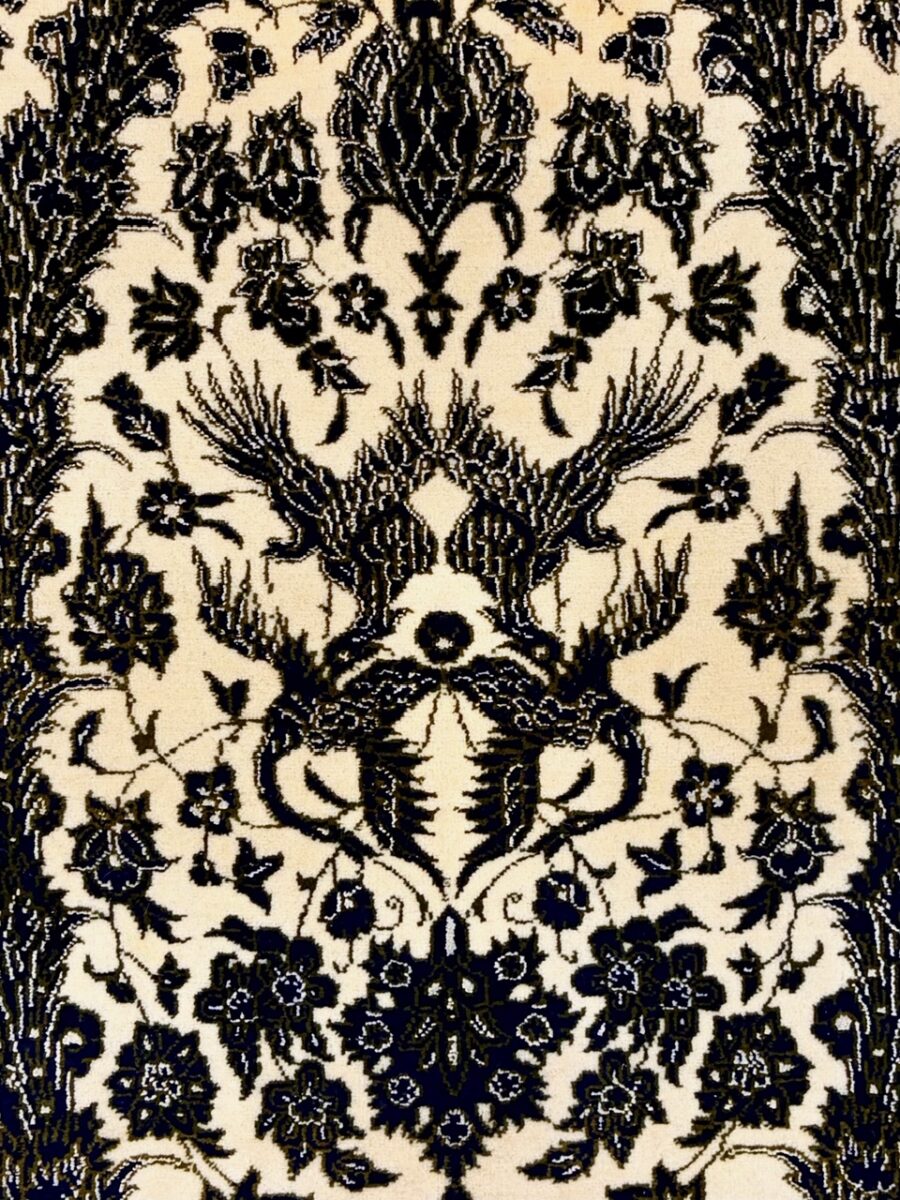 この町で製作される絨毯はイランで最も高品質なものとして知られており、通常はシルクの縦糸とコルク・ウールと呼ばれる柔らかな羊毛がパイルに使用されます。