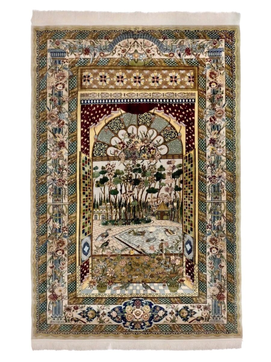 この町で製作される絨毯はイランで最も高品質なものとして知られており、通常はシルクの縦糸とコルク・ウールと呼ばれる柔らかな羊毛がパイルに使用されます。