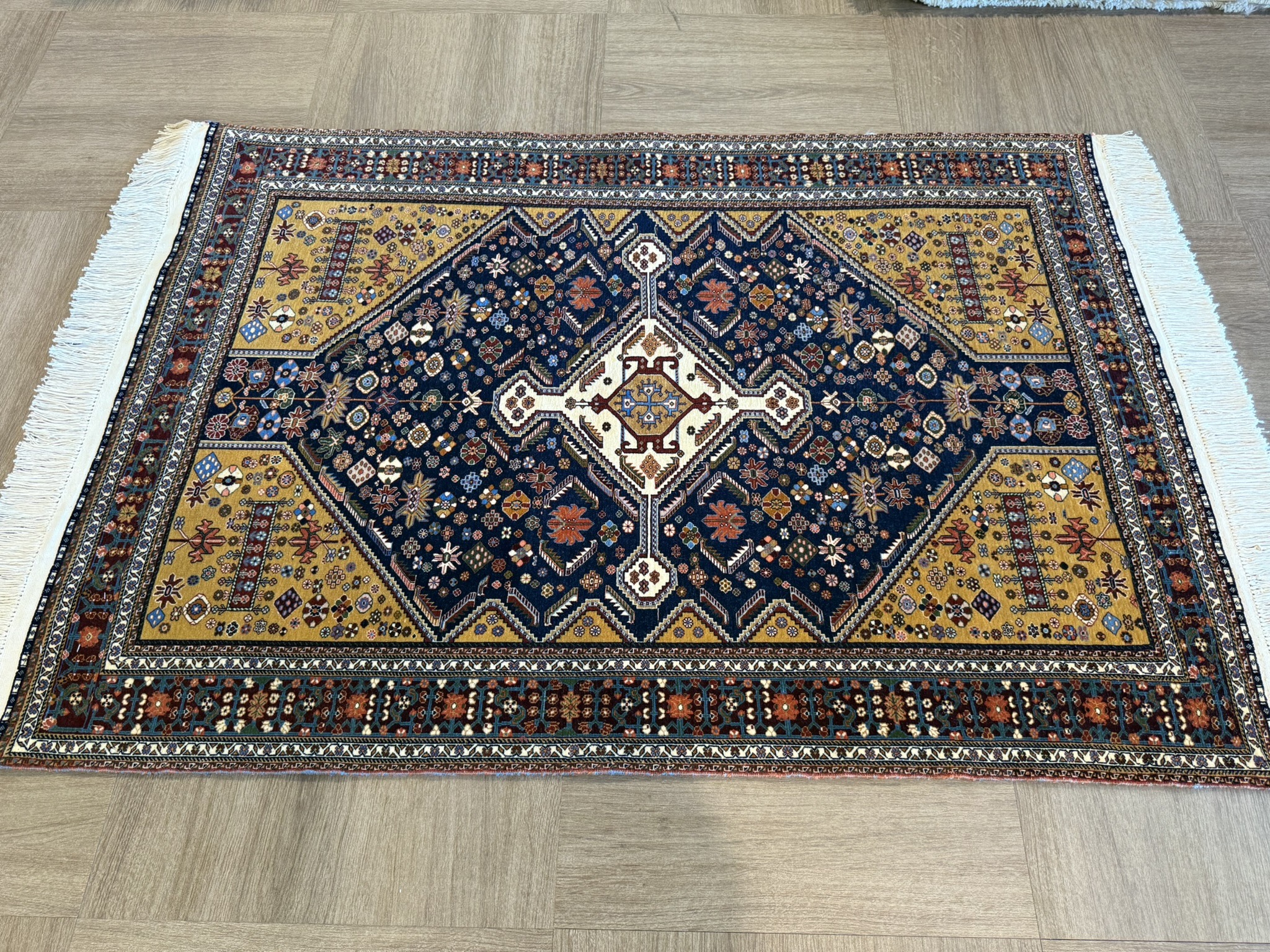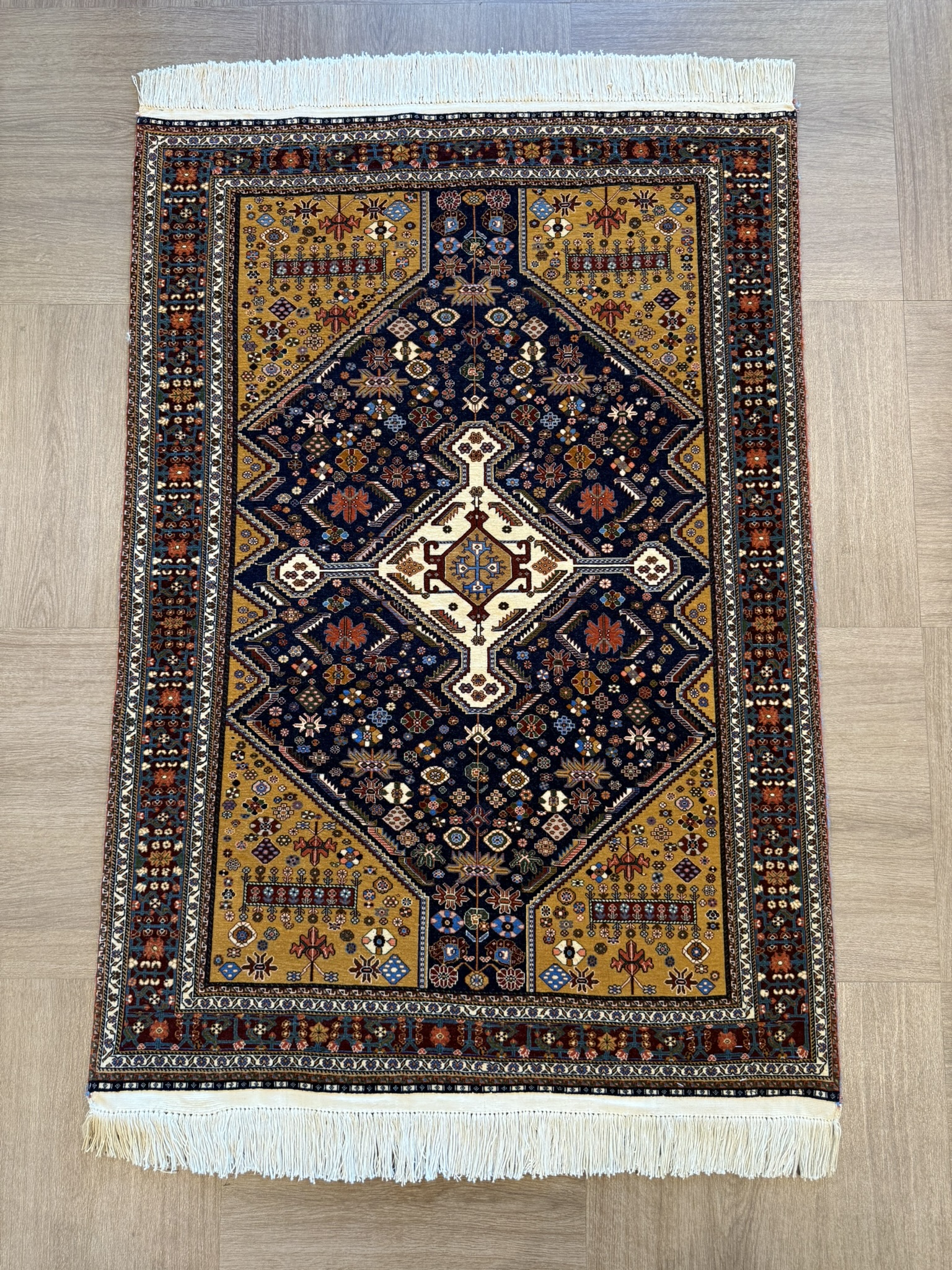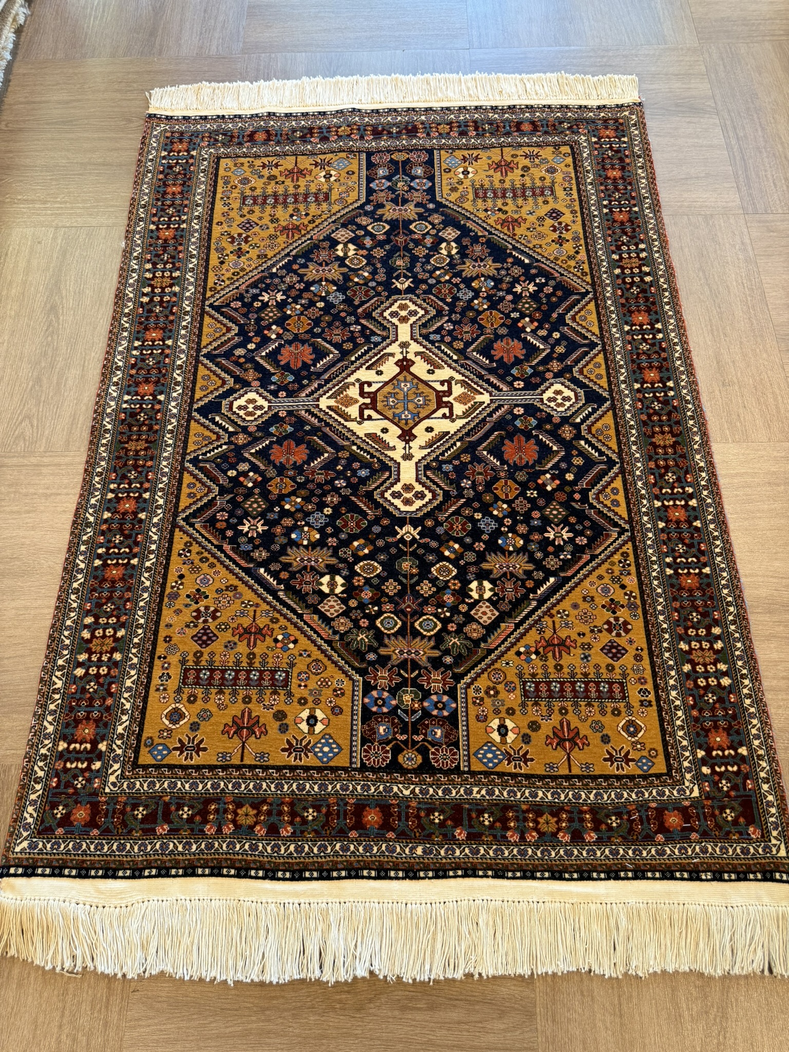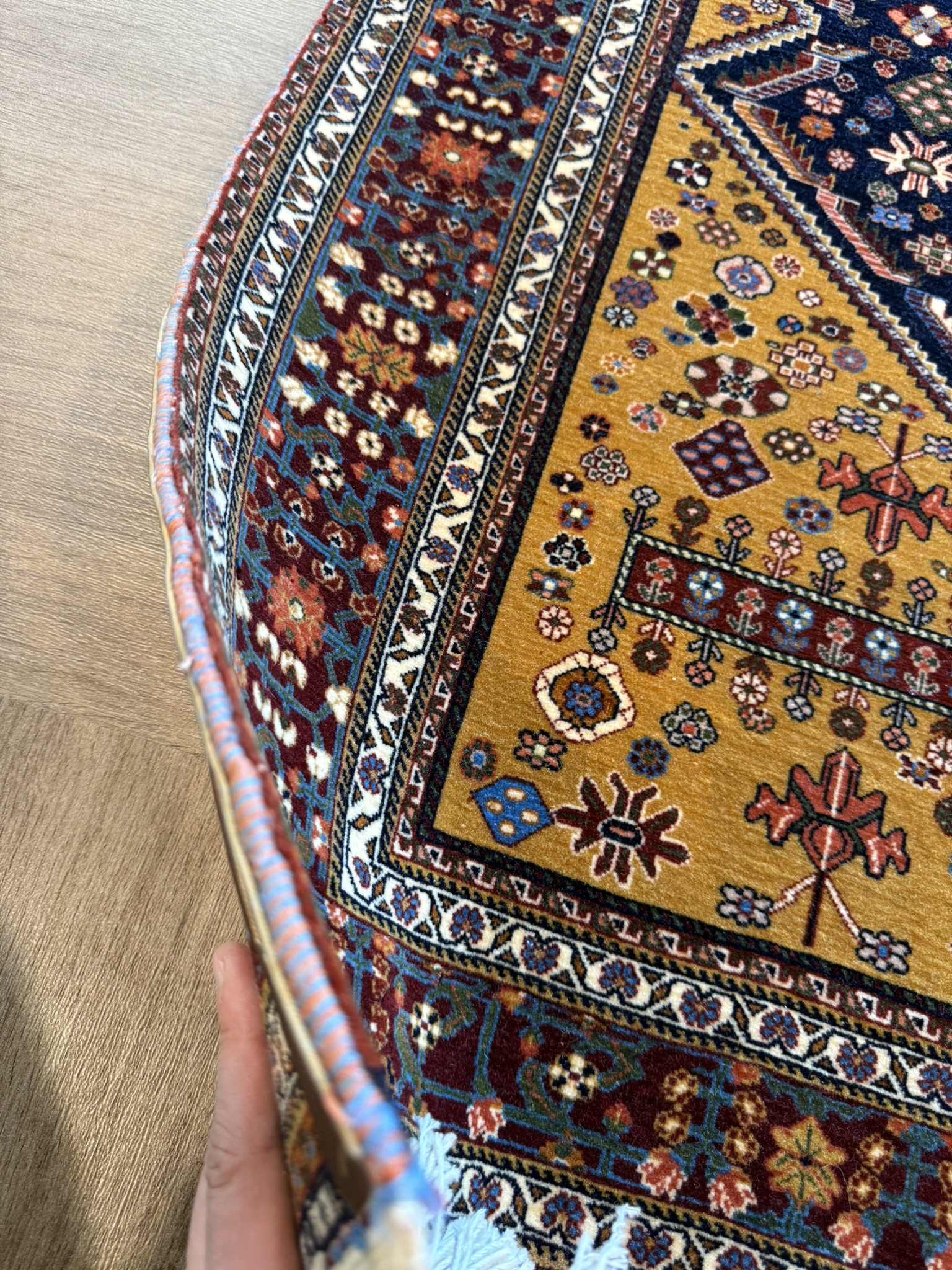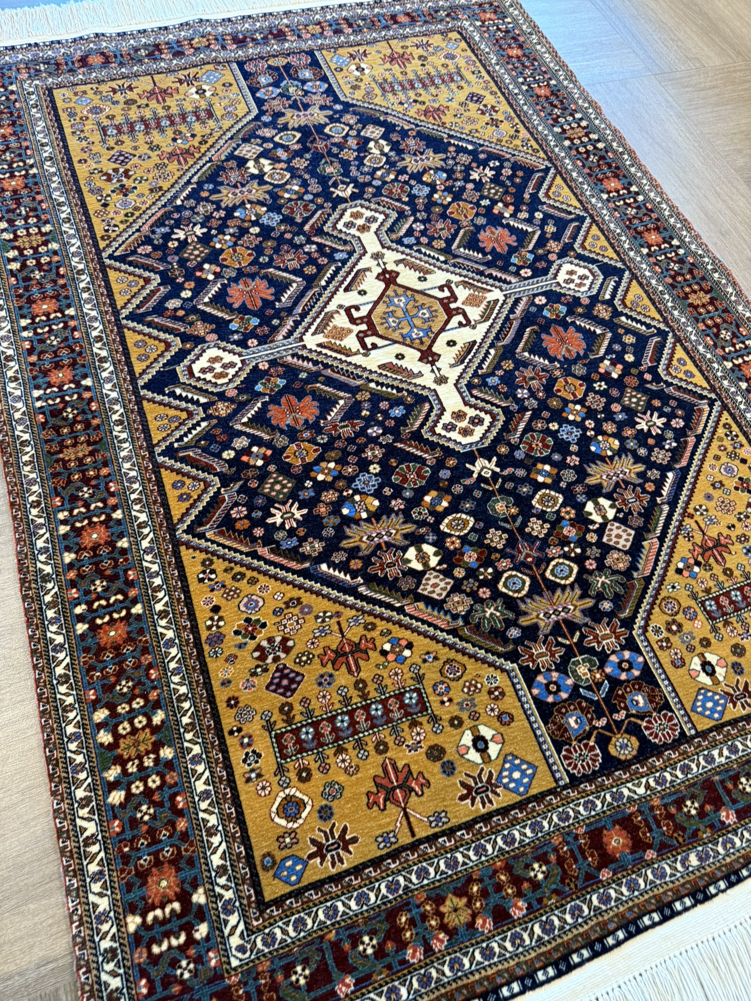 最近は同じカシュガイが製作するギャッベの人気に押され、こうしたカシュガイ絨毯は姿を消しつつあります。