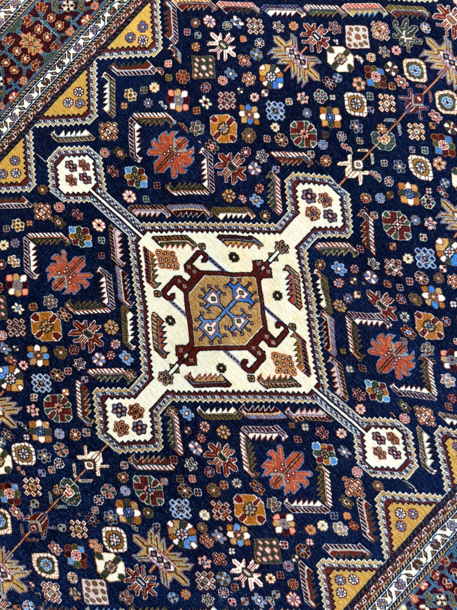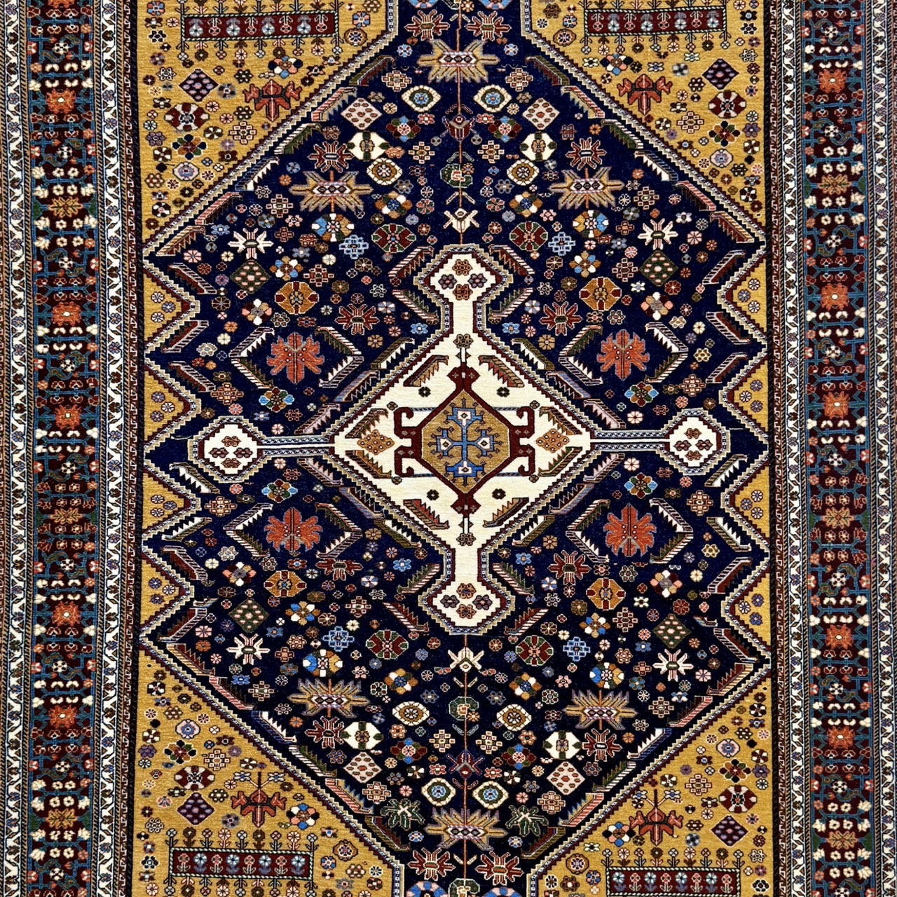 部族の絨毯としては高品質で知られるカシュガイ絨毯ですが、とりわけ最大勢力であるカシュクリ族が製作するものの中には、100万ノットを数える驚異的な緻密さを持つ作品も存在します。