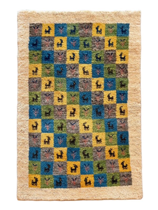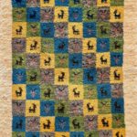 モダン・ギャッベには一般的な「ギャッベ」と、ノット数のやや多い「ギャッベ・リズ」があります。 随所に配置された羊や樹木がアクセントになっており、シンプルでありながらも退屈させないデザインです。