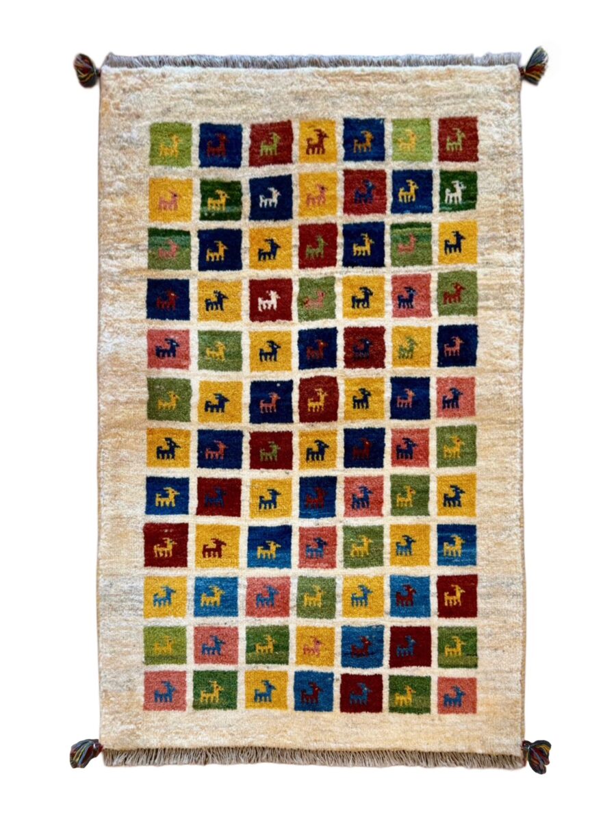 ■ギャッベは、イラン南西部のファース州に居住するカシュガイやルリの定住民やイラン人農民らによって製作される織りの粗い絨毯で、モダン・ギャッベは伝統的なギャッベ(オールド・ギャッベ)を現代人の趣向に合わせて改変したものです。