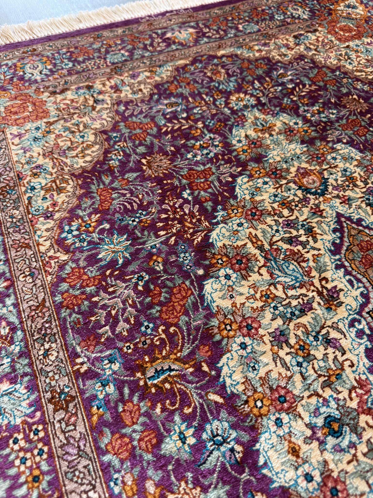 1960年代に入るとオール・シルクの絨毯が製作され始め、やがてクムはシルク絨毯の産地として世界的に名を知られるようになったのです。