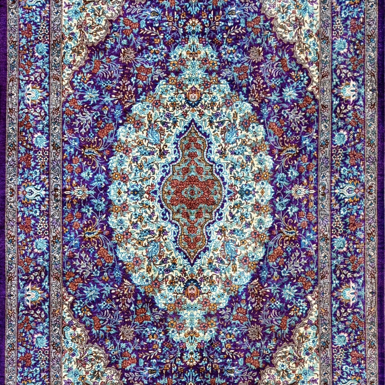 ペルシャ絨毯 【シルク】クム産 サデギ工房 118x80cm