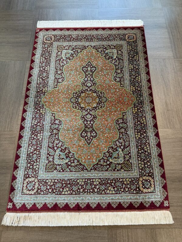 ペルシャ絨毯 【シルク】クム産 シャヤン工房 122x80cm