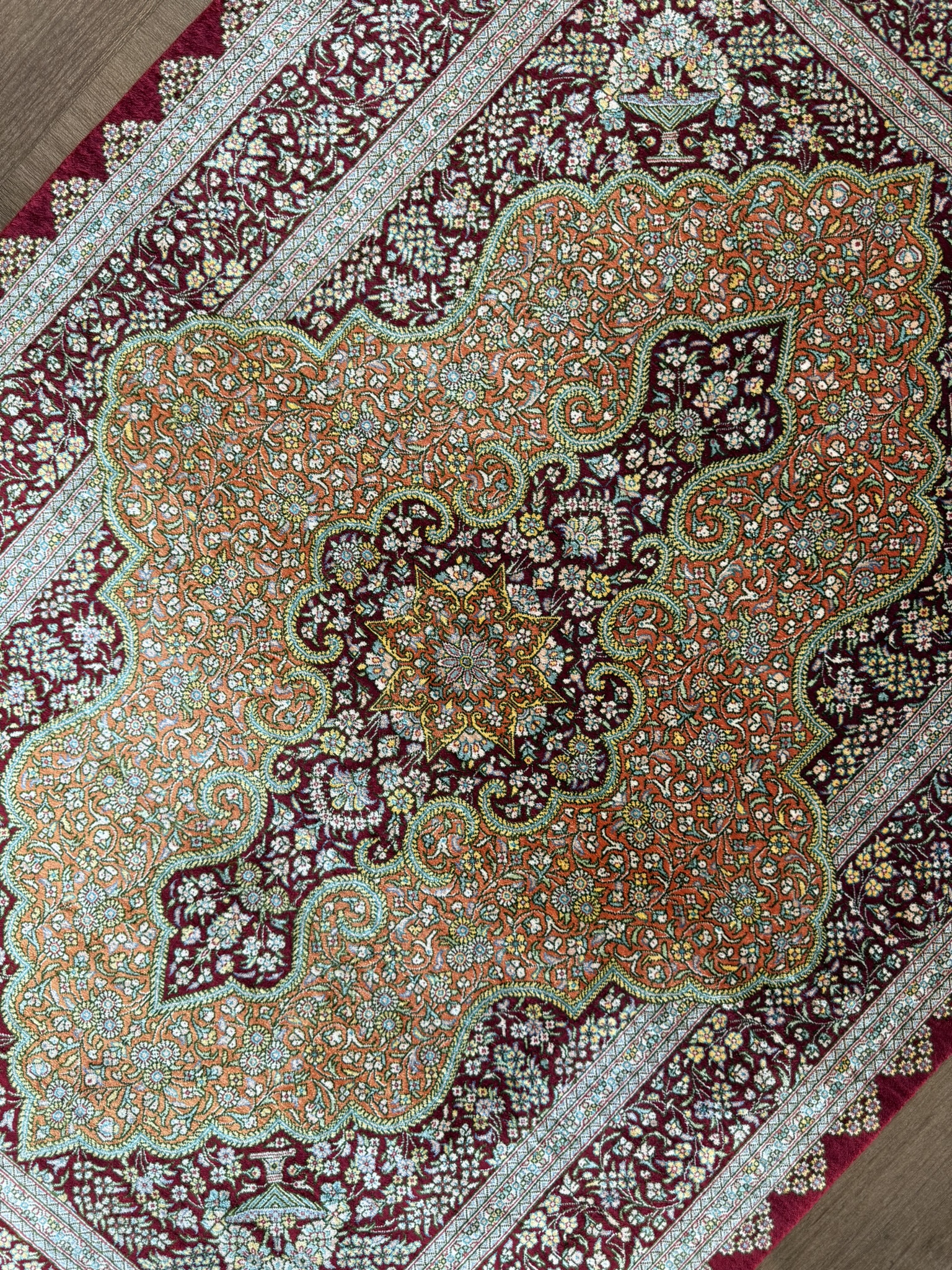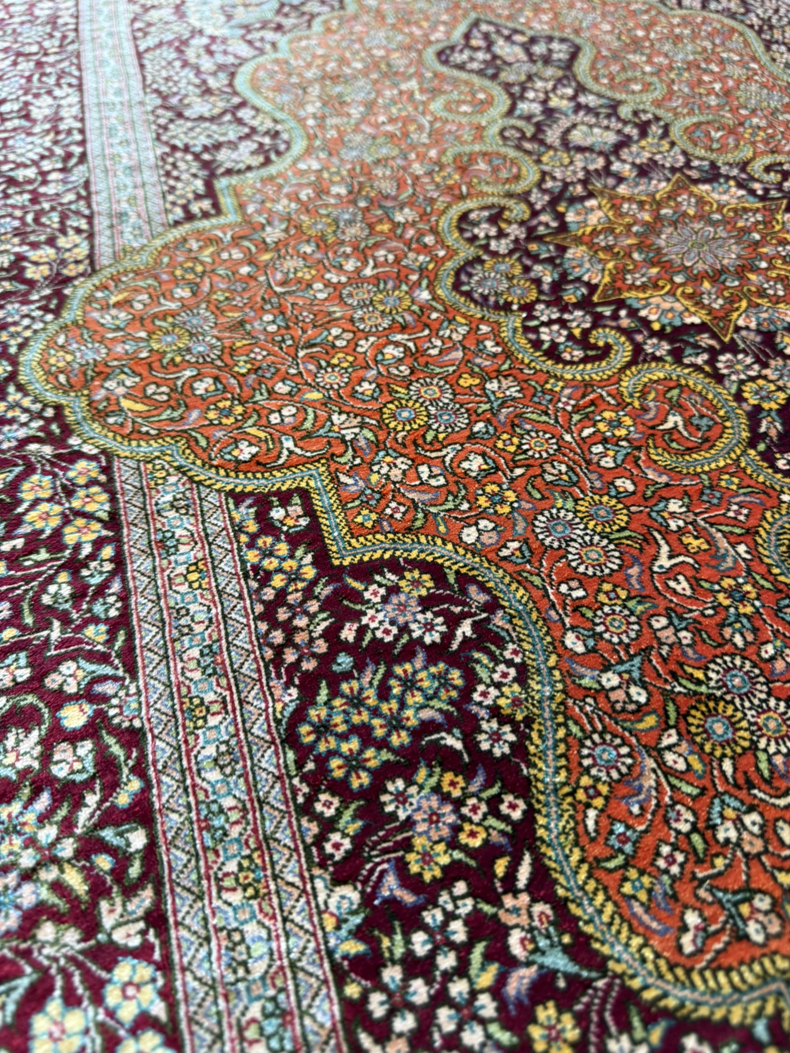 1960年代に入るとオール・シルクの絨毯が製作され始め、やがてクムはシルク絨毯の産地として世界的に名を知られるようになったのです。