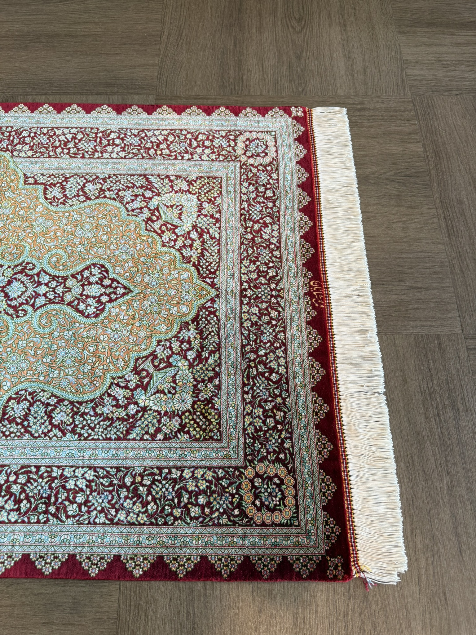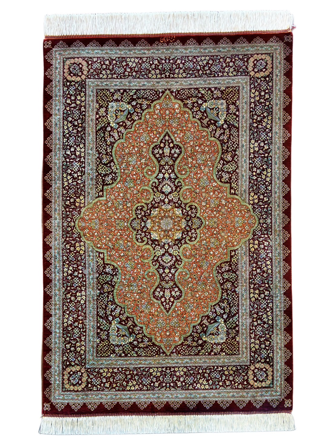 ペルシャ絨毯 【シルク】クム産 シャヤン工房 122x80cm