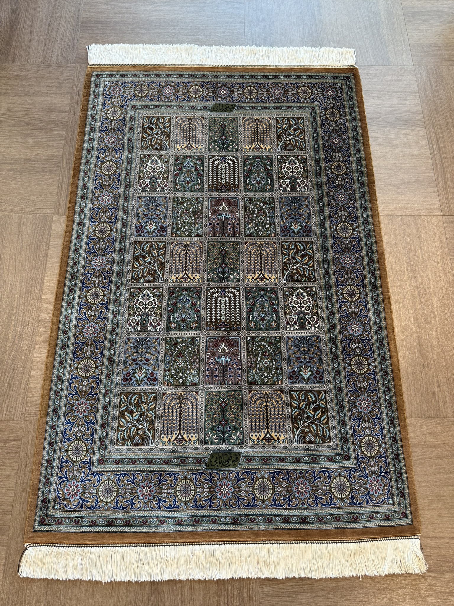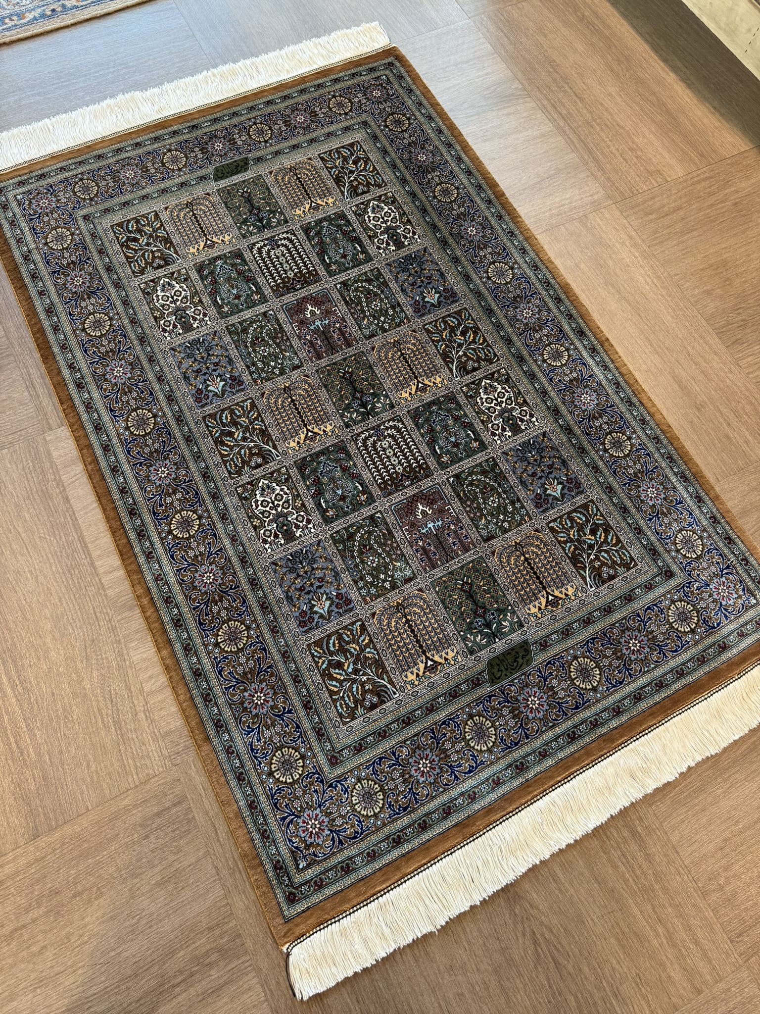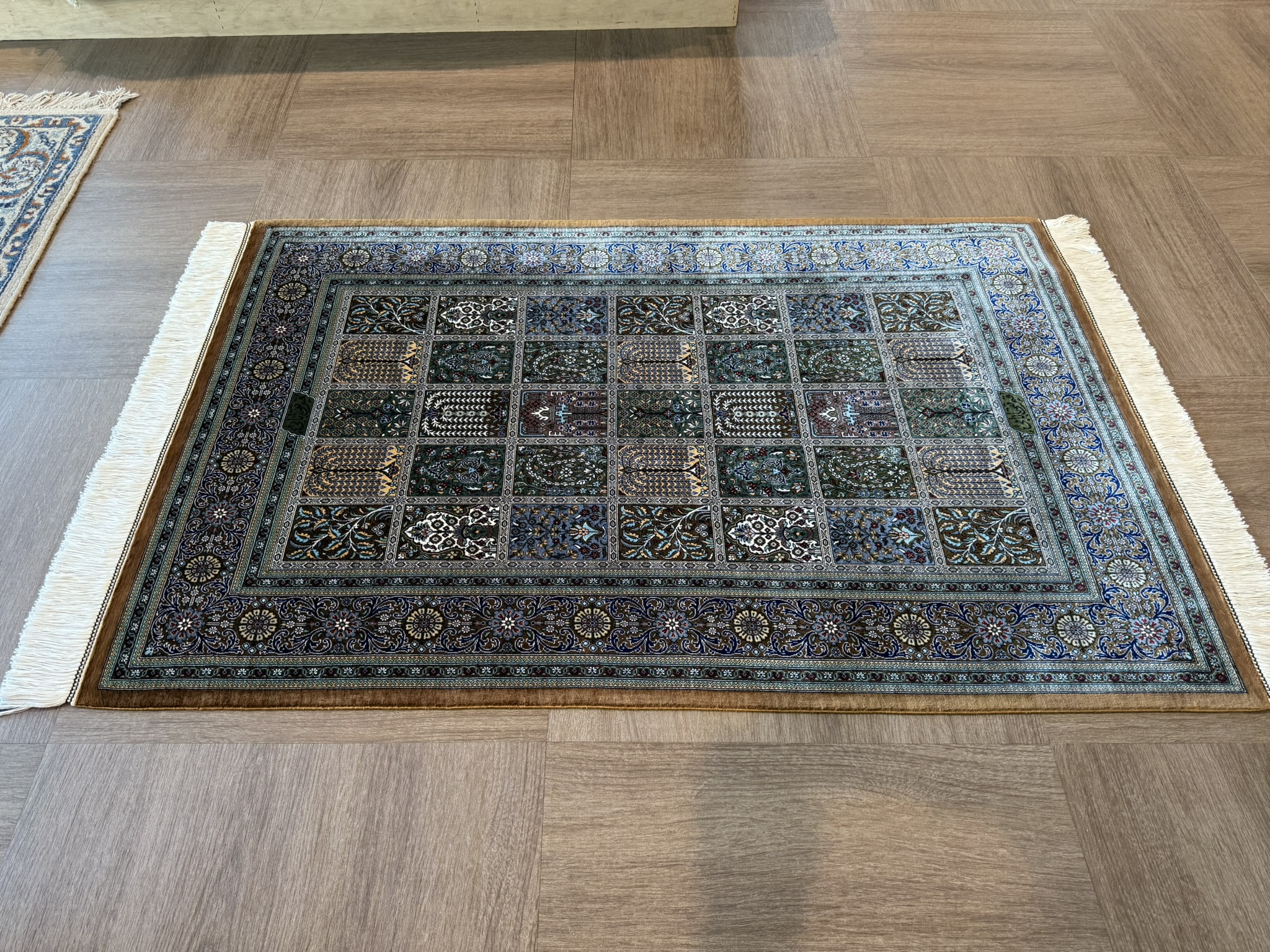 ペルシャ絨毯 【シルク】クム産 ババイ工房 ヘシティ123x80cm