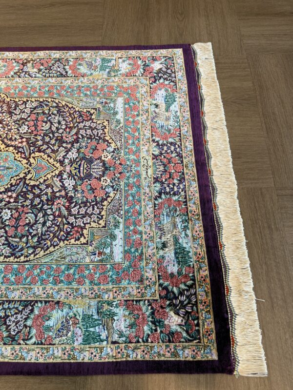ペルシャ絨毯 【シルク】クム産 ホセイニ工房 145x100cm