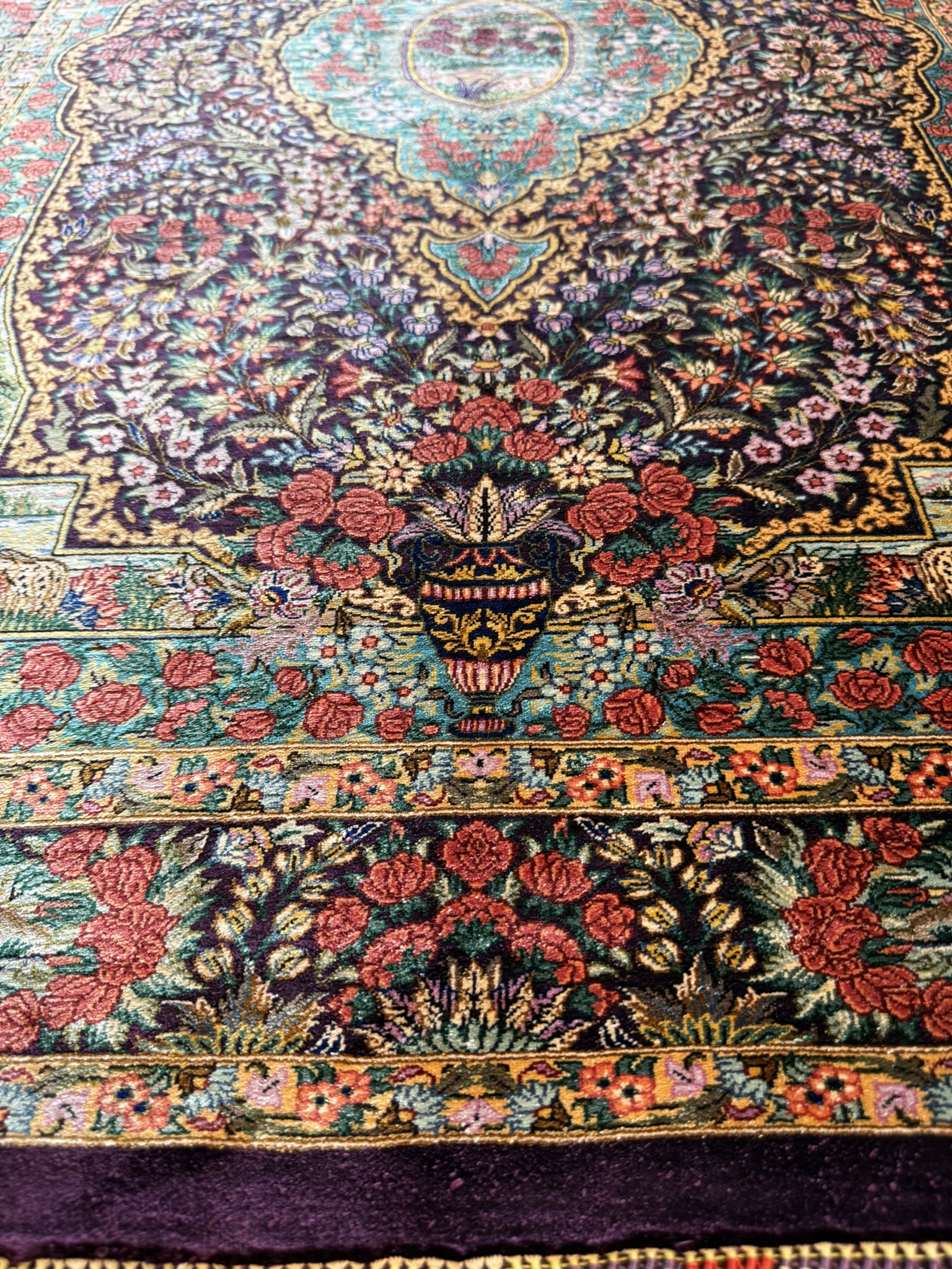 1960年代に入るとオール・シルクの絨毯が製作され始め、やがてクムはシルク絨毯の産地として世界的に名を知られるようになったのです。