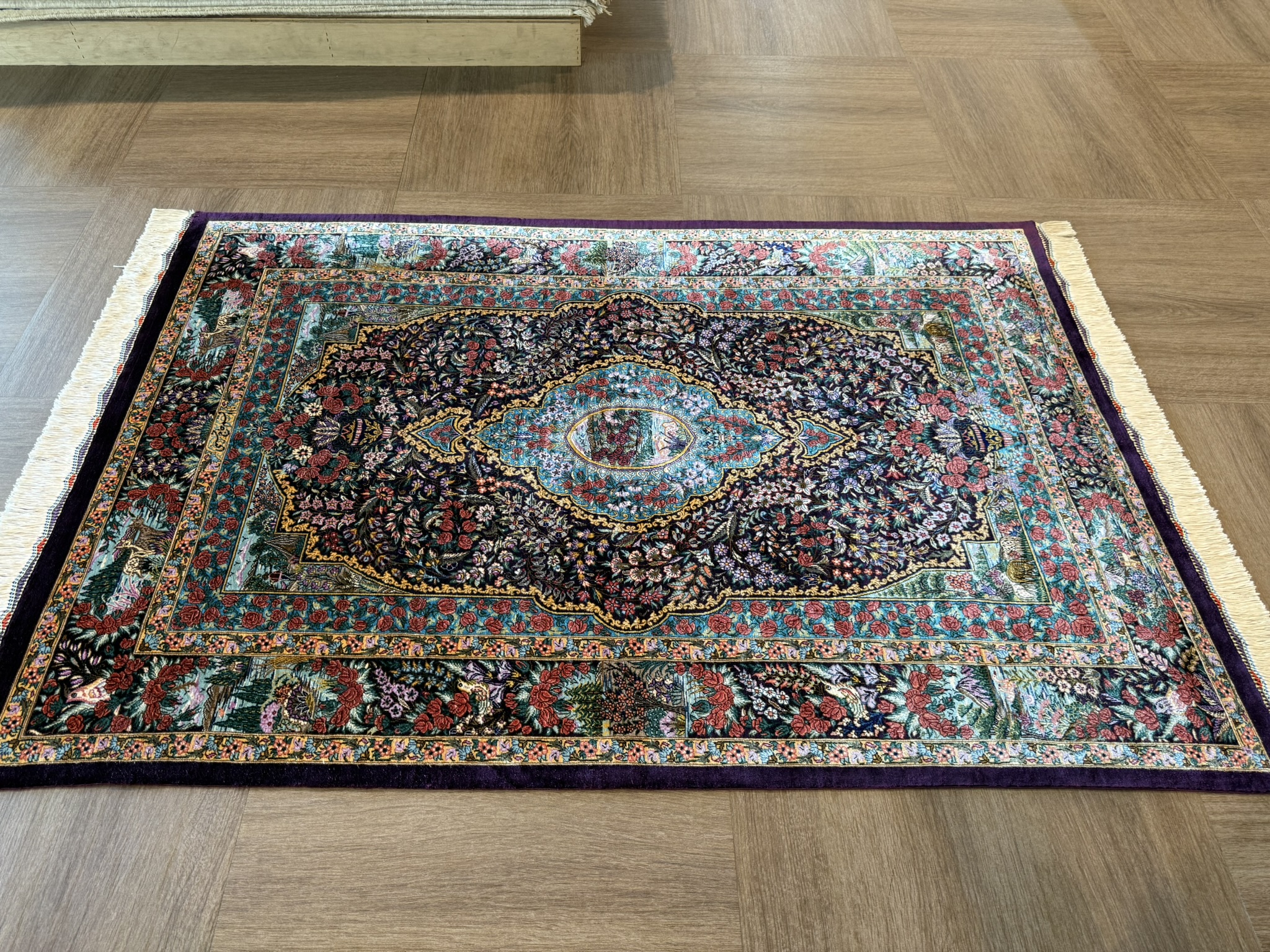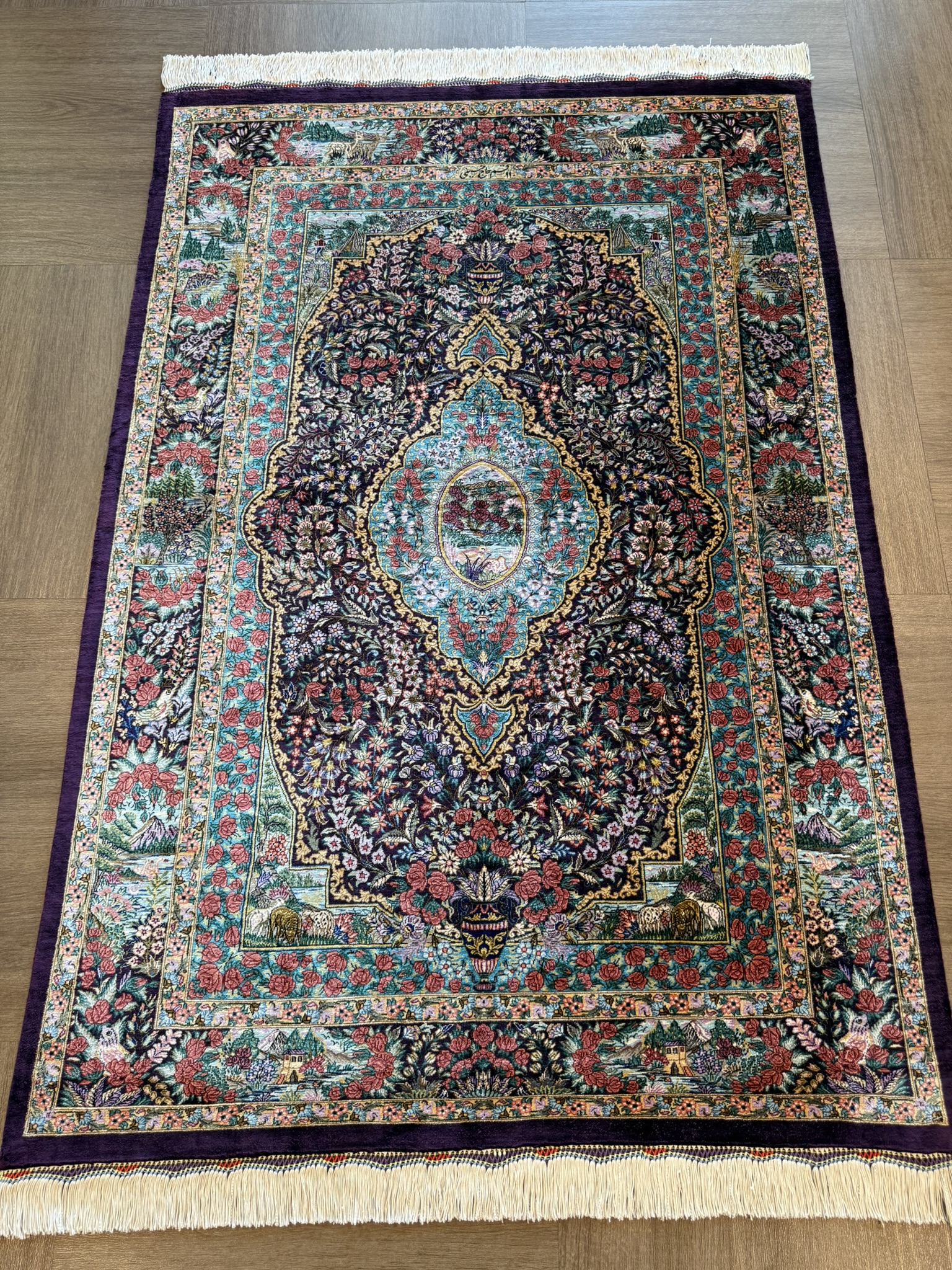 ペルシャ絨毯 【シルク】クム産 ホセイニ工房 145x100cm