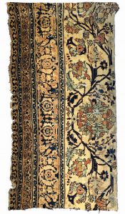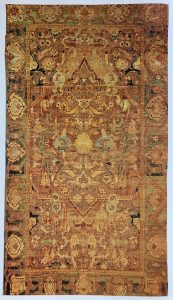 現存するペルシャ絨毯のうち、製作年が織り込まれている最古の作品は、現在ミラノのポルティ・ペッツォーリ美術館が所蔵する「狩猟文様絨毯」とされます。